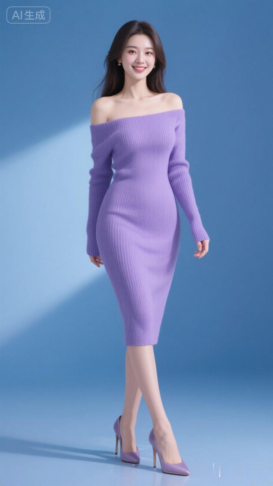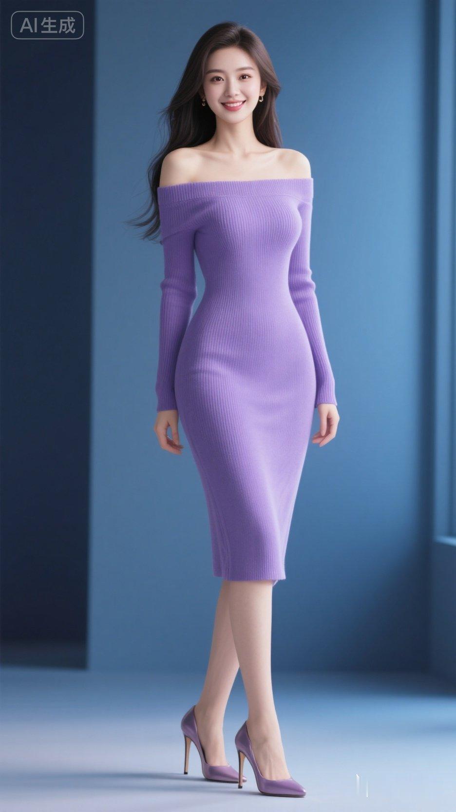 温柔紫毛衣搭配紫高跟鞋,甜美又时尚!💜👠