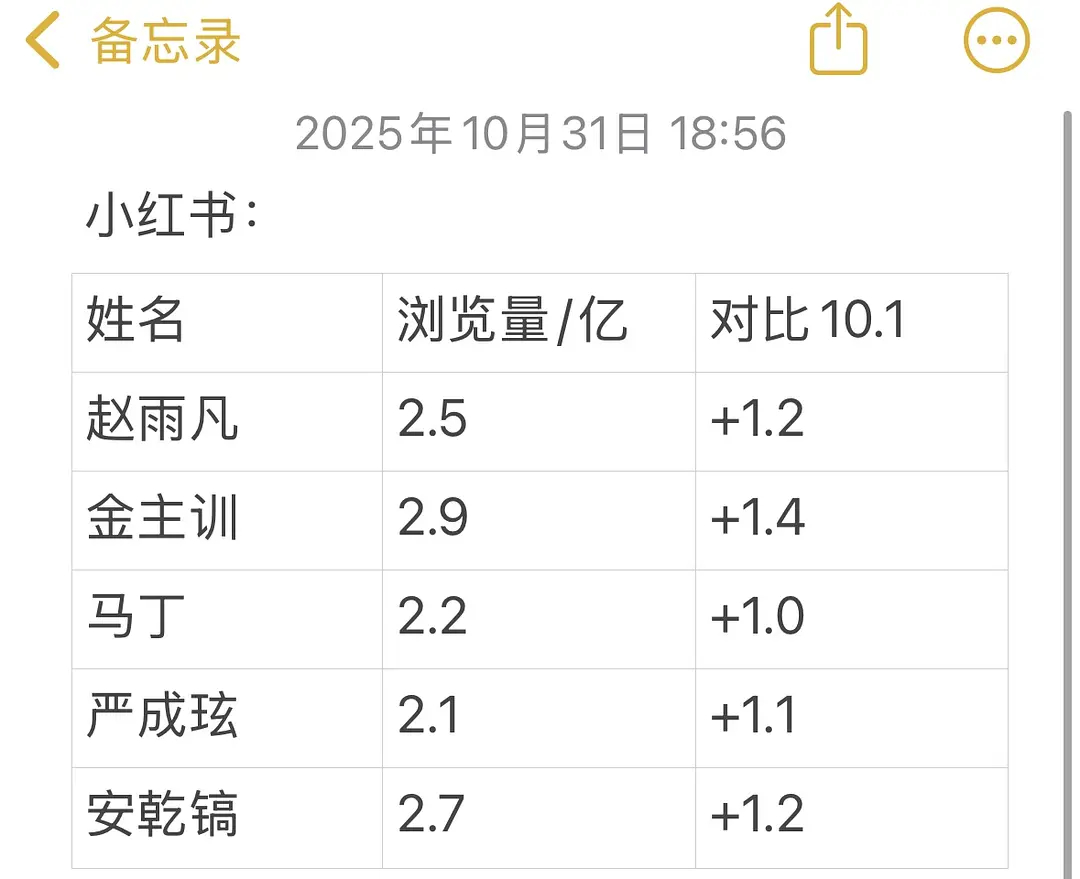 Cortis 成员🫘🍠一个月(10.1——10.31)数据涨幅情况【赵雨凡、