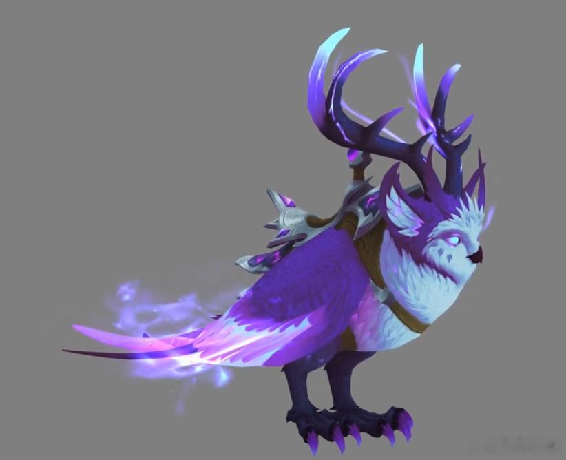 MrGM在魔兽世界至暗之夜A测客户端发现了一个全新的紫焰猫头鹰模型,感觉比红焰好