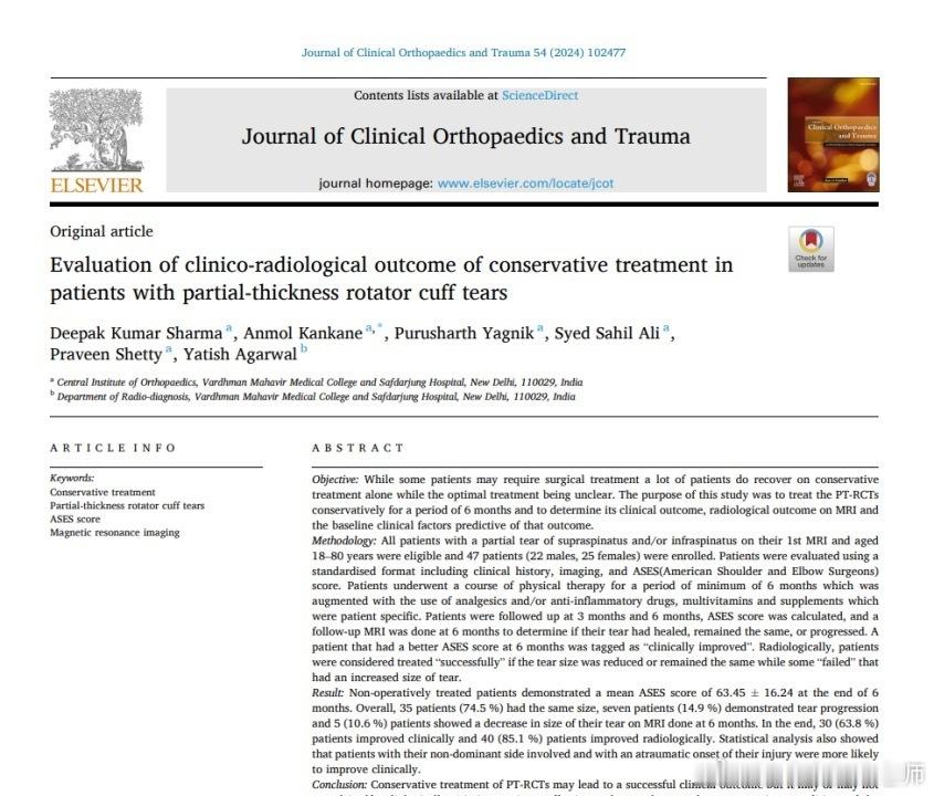 ⚠️研究表明:对于部分厚度撕裂且症状较轻的患者,保守治疗往往能取得良好的效果。