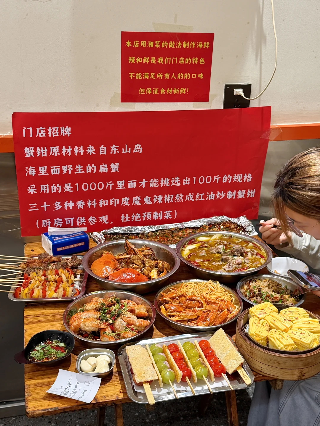 种草这个奶皮子冰糖葫芦好久了🤤🤤没想到湘潭也有了!!怒买四串…… 晴王酸奶的好好吃🤤直接一口爆汁!绝了!还有扁山楂和番茄的也好爱啊!!他家叫:崔老板,藏在居民楼下!位置不怎么打眼,饭点过来生意好🔥海鲜和湘菜、烧烤口味敲棒!我们全都吃光了