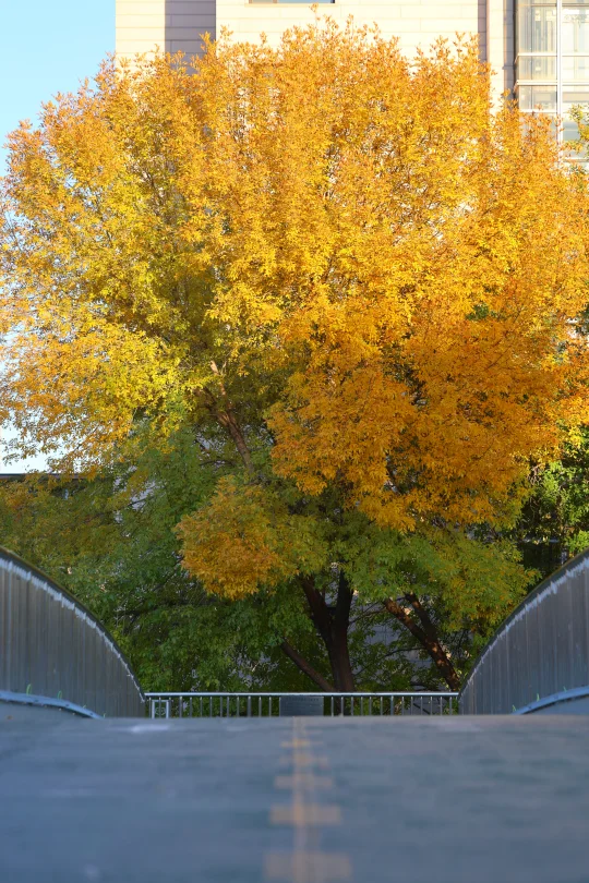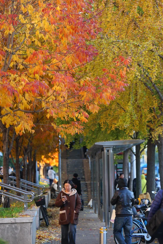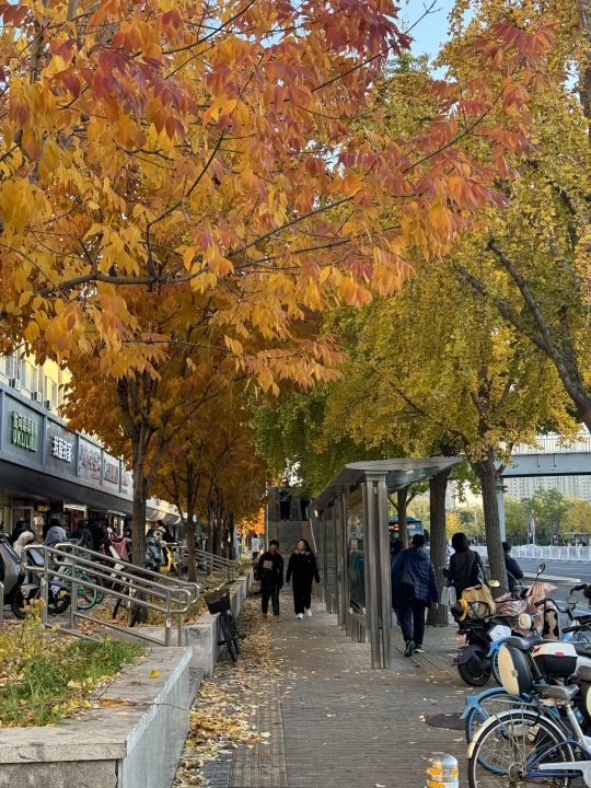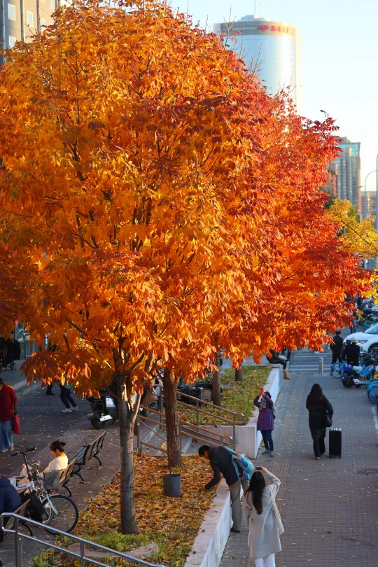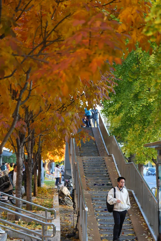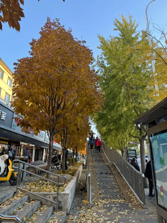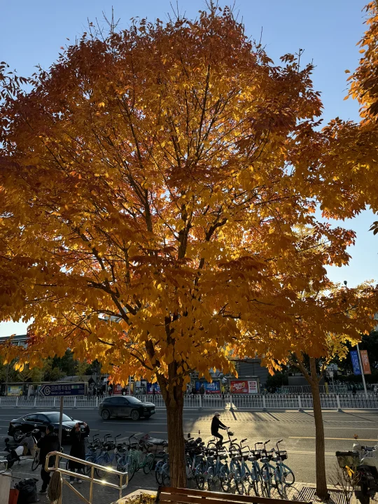 最近几天有不少朋友推荐说中关村南大街很美 下午日落前去了一趟 我停在国图对面 [打卡R]在国图对面的「国家图书馆」公交站 有银杏,梣叶槭等几种树 这个公交站被包围了 红透,黄透了 这里还有两座天桥,天桥桥头还有棵白蜡,也很美(图4) 如果来中关村,国家图书馆,紫竹院,动物园等地方 很推荐顺道过来打卡! 中关村南大街,沿途都是银杏,也黄了很大一部分 进度在50%左右 次于清华,奥森 但比钓鱼台,地坛,中山公园要黄些 这个周末就可以赏秋!