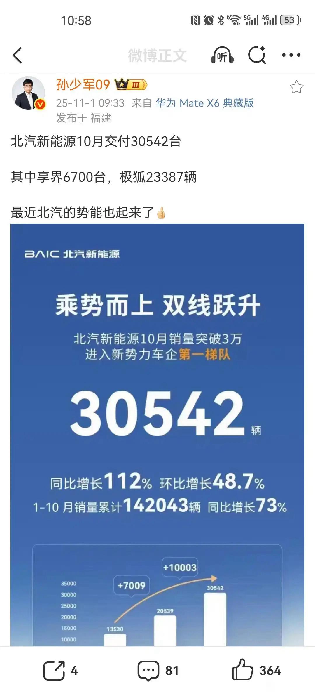 目前理想,零跑(含海外),小鹏,北汽新能源(享界,极狐),小米,智界都发布了10月份交付量。零跑真猛!【来自懂车帝车友圈】