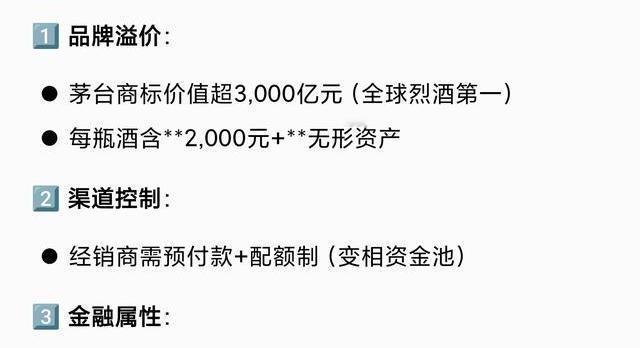 茅台的成本,可能真的会颠覆很多人的认知。 一瓶飞天茅台,从高粱到酿造出酒,直接生产成本其实不到100块钱。 是的,你没看错,就是两位数。 但它一走出酒厂大门,贴上“贵州茅台”的标签,身价立刻飙升到1069元。经过层层渠道,最终摆到我们面前时,价格已经稳稳站在3000元上下。这个过程,价值翻了整整30倍。 这中间巨大的差价,并不是酒本身的味道发生了变化,而是“茅台”这两个字的价值。它早已超越了饮品属性,变成了一种公认的社交资产和硬通货。在很多场合,递上一瓶茅台,比说一万句漂亮话都有用。 为了捍卫这种价值,茅台把细节做到了极致。比如瓶盖上不起眼的“MT”喷码,是内部追溯的暗号;那根红色的飘带,长度也必须是精准的17.5厘米。这些都是它无形的护城河。 所以问题来了,我们花几千块买一瓶茅台,到底是在为那口酱香买单,还是在为它背后所代表的身份和圈子付费?