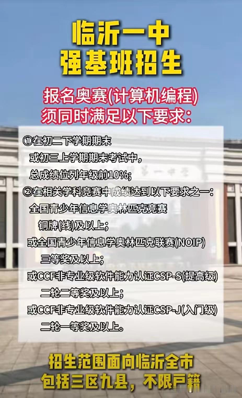 有没有必要去参加临沂一中的强基班,其实这个是需要因人而异的,并不是所有孩子都适合。如果孩子天赋比较高,父母第一学历是本科,可以试试。如果是普通家庭的孩子,父母第一学历也不是很高,再加上孩子初中补课比较多,就需要慎重。作为父母,理性评估自己孩子的学习能力,更有利于孩子健康成长。欢迎大家留言文明交流!