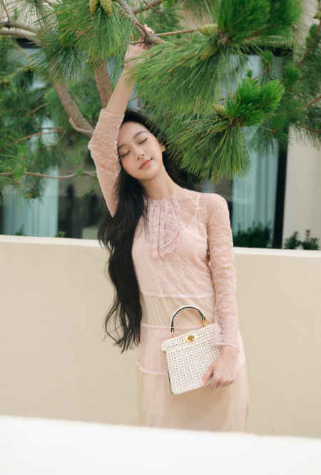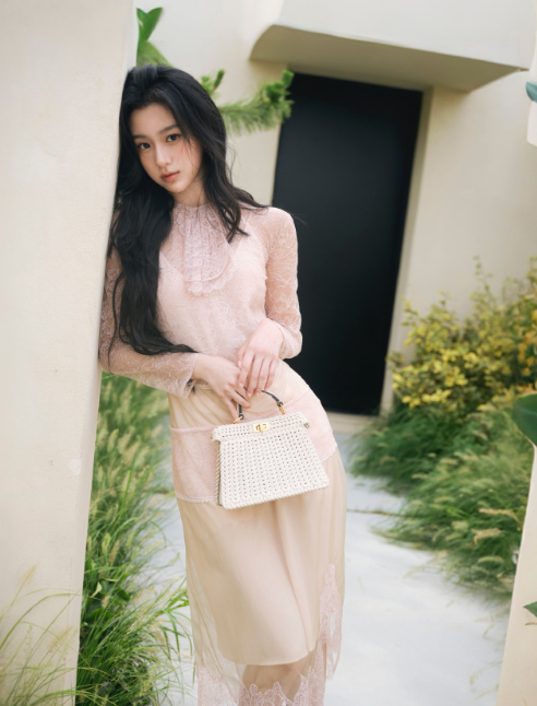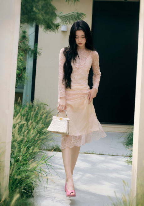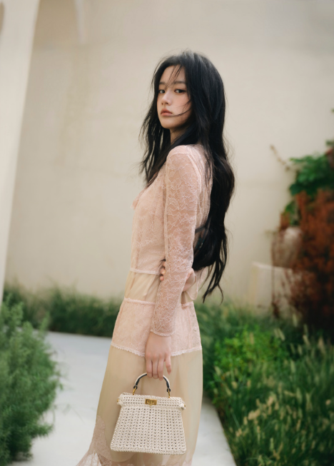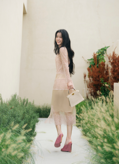 粉色开衫配绿色开衩裙,清新又显白,脚踩同色系人字拖,这配色和穿搭绝了,氛围感直接