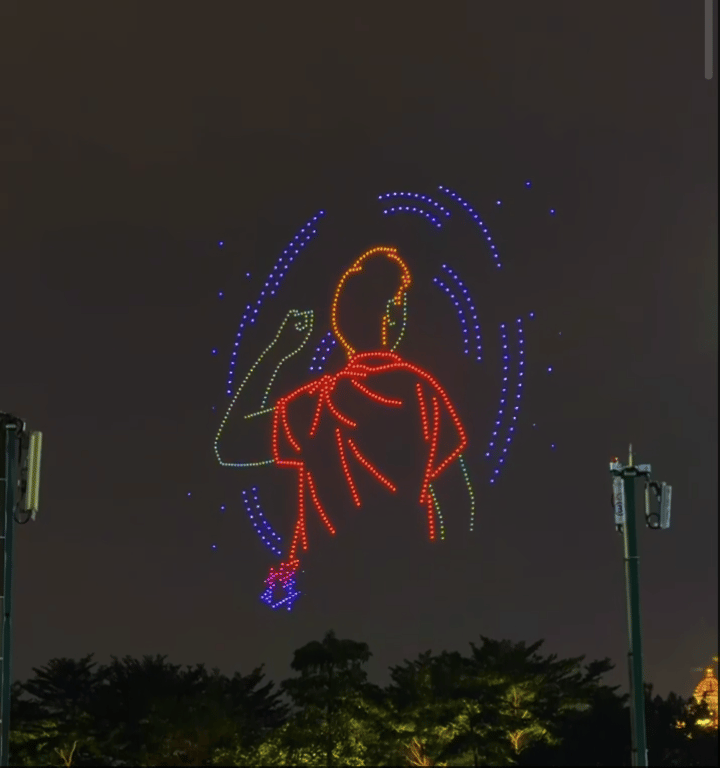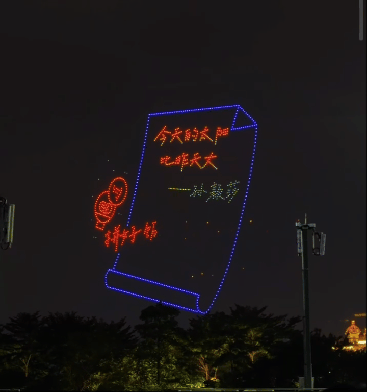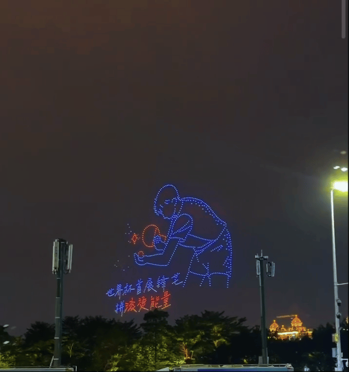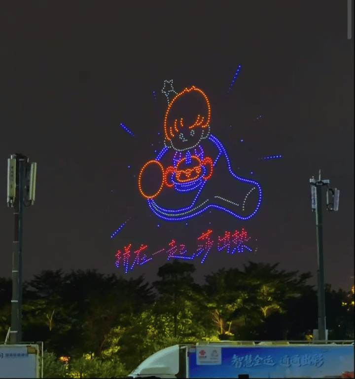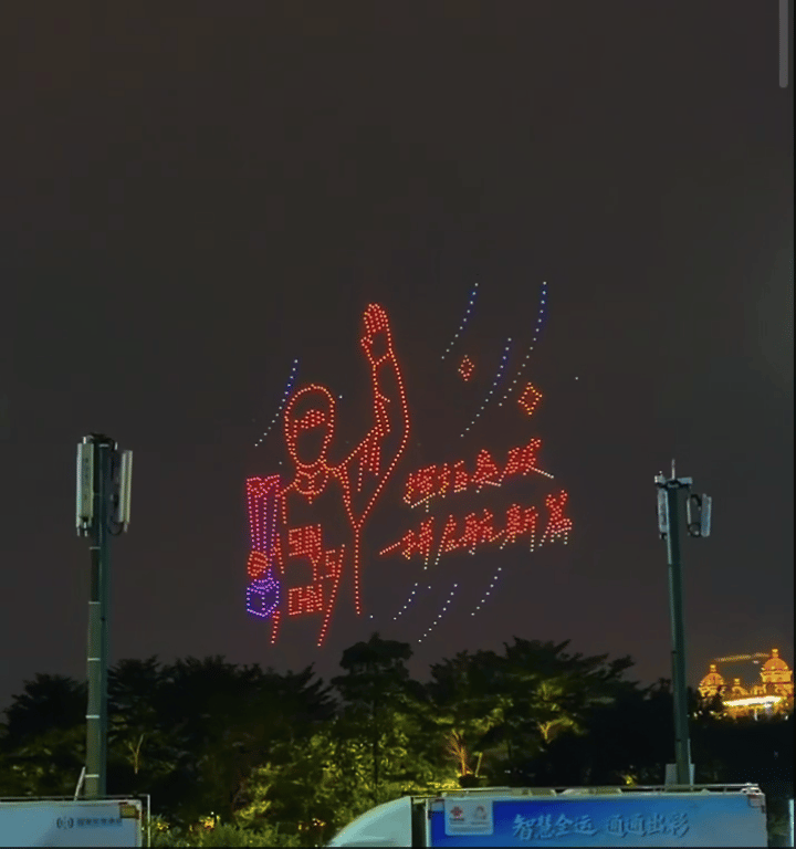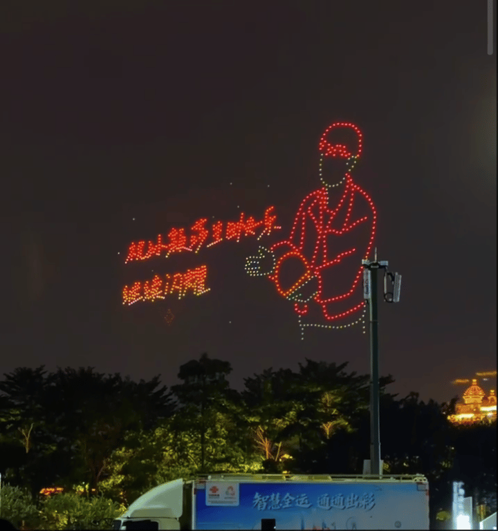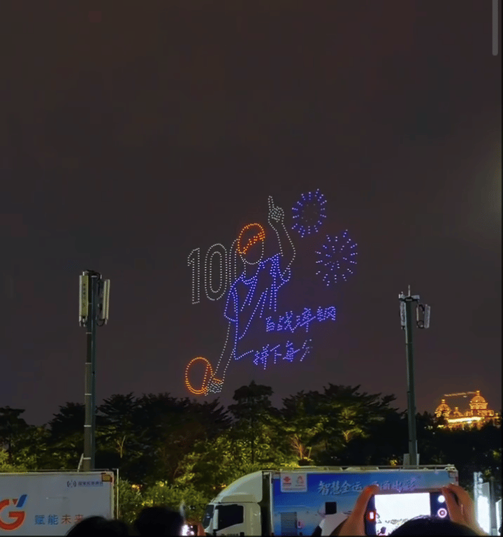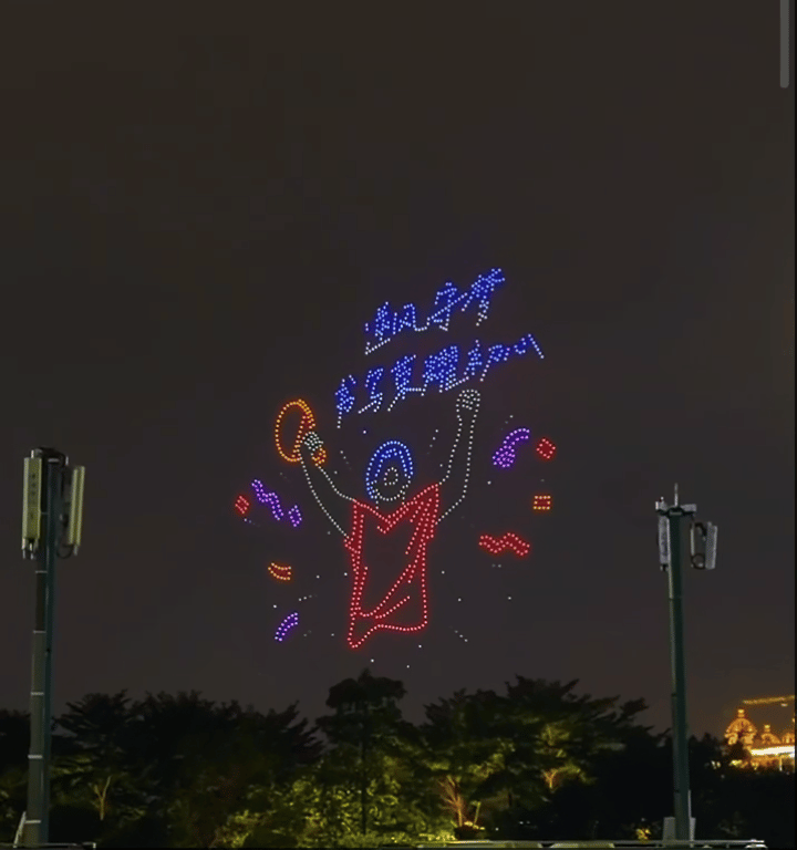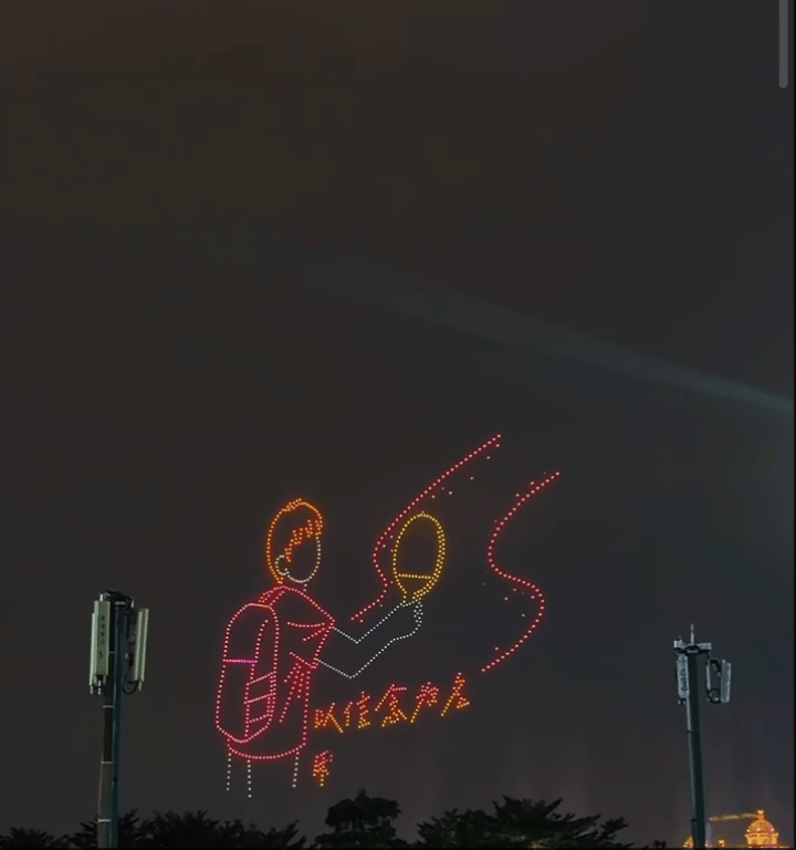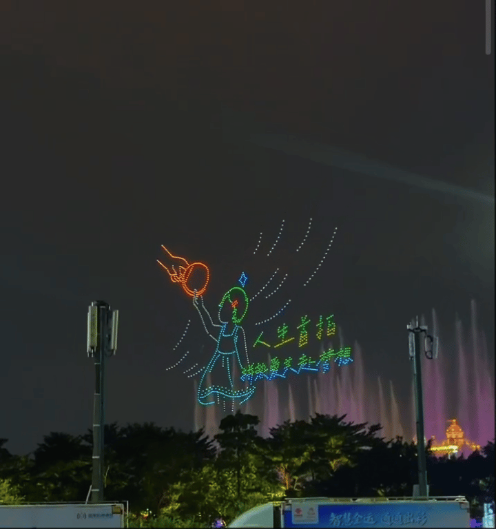 孙颖莎 [哇]广州塔旁1104架无人机,一同见证在空中闪耀的生日惊喜,为孙颖莎点