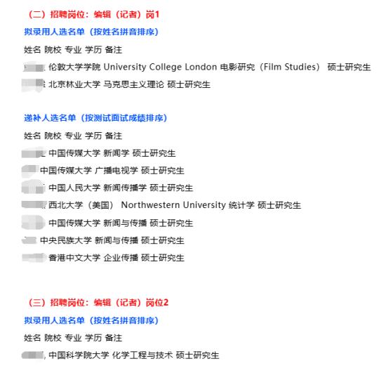 ✅以上为中国石化报社录取名单,从公示上可以看出,大型央企还是比较中意国际传播背景的同学,留学生同学比较多。 🎈专业层面还是以新闻传播专业为主,除此之外还有艺术学专业以及石油化工专业。 🎈中传人大依旧是传媒行业的老人,录取名单上也比较多,除此之外还有一些双非的其他学校,总之包容性还是比较大的。