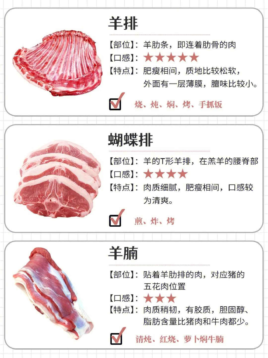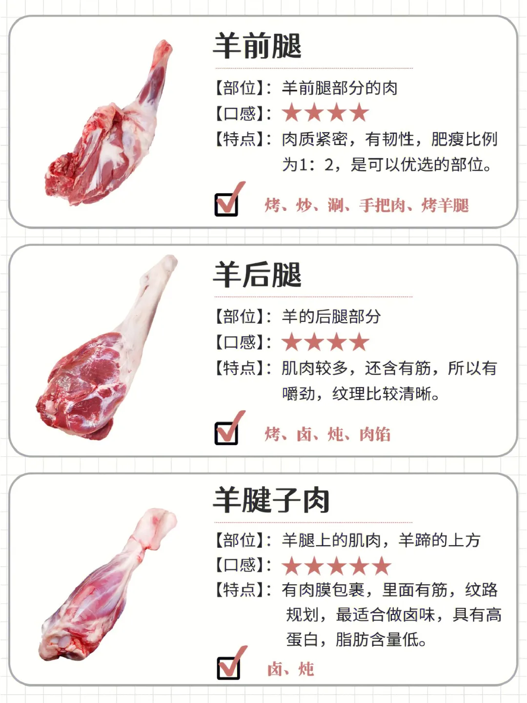 宝子们,谁能拒绝香喷喷的羊肉啊!但同样是羊肉,不同部位差别可大了,快来看看这份超全羊肉指南👇