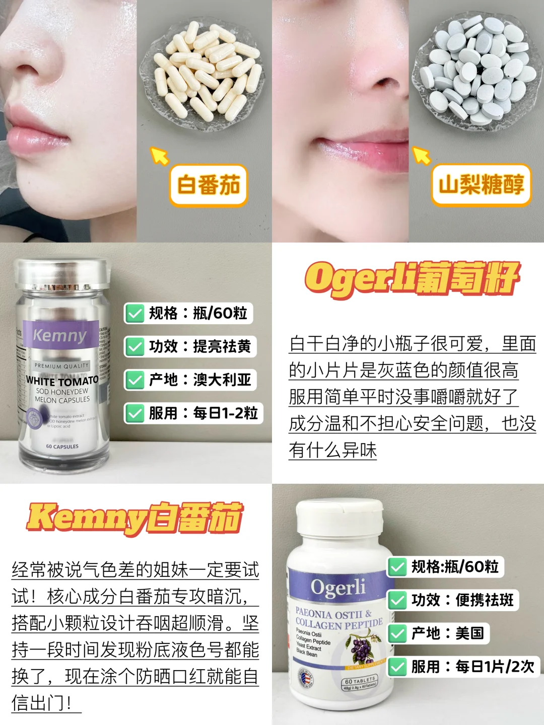 葡萄籽白番茄Kemny白番茄美白丸好物推荐白番茄测评黄黑皮熬夜党必备冷白皮提升气色美白内调变白推荐内服美白学生党内调