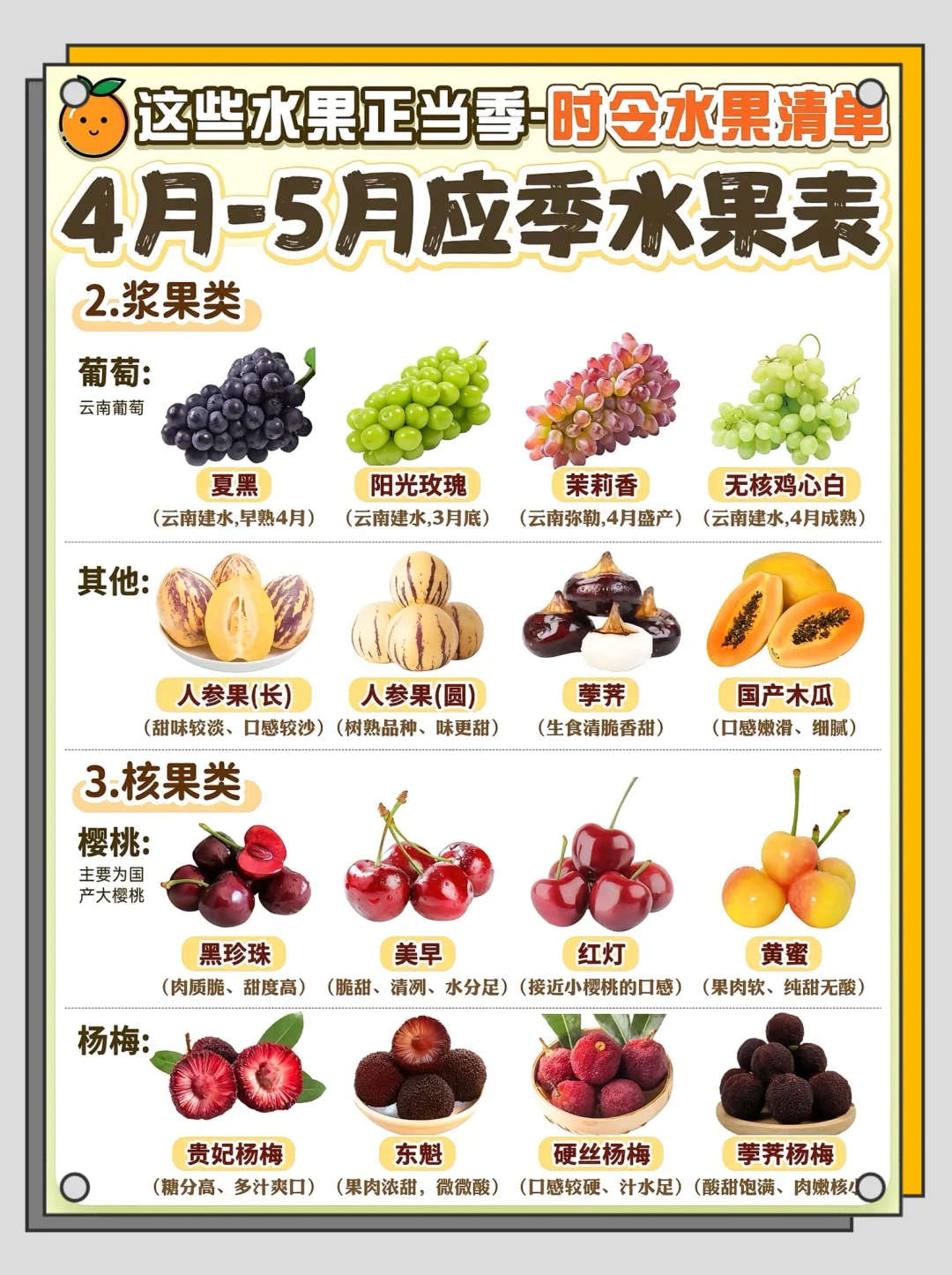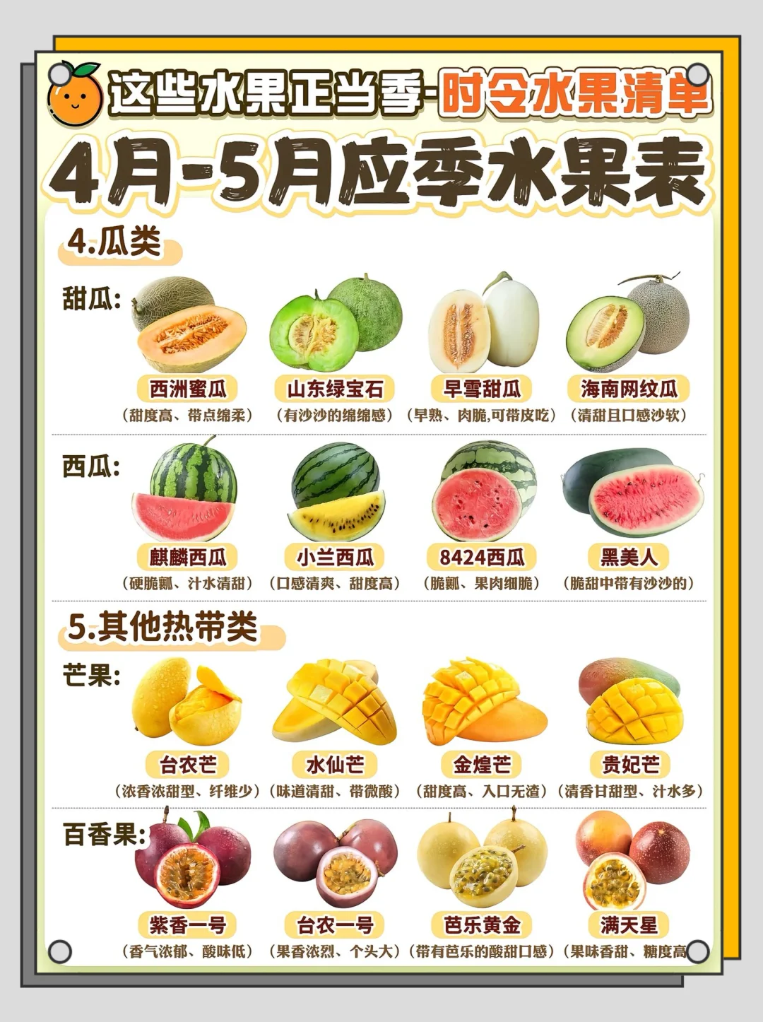 宝子们🥰,又到了水果超丰盛的季节啦!快来瞅瞅4 - 5月的应季水果,闭眼入~