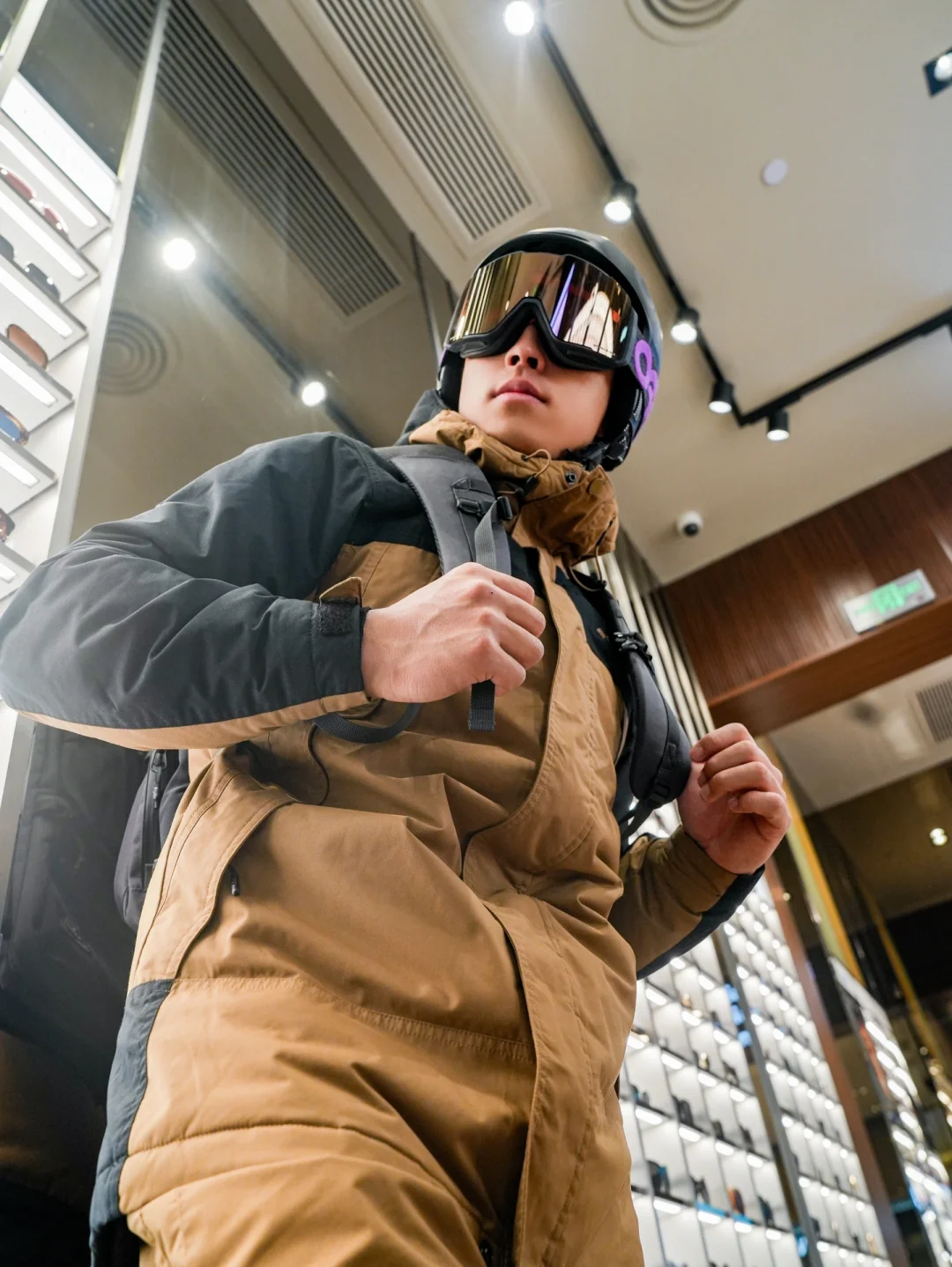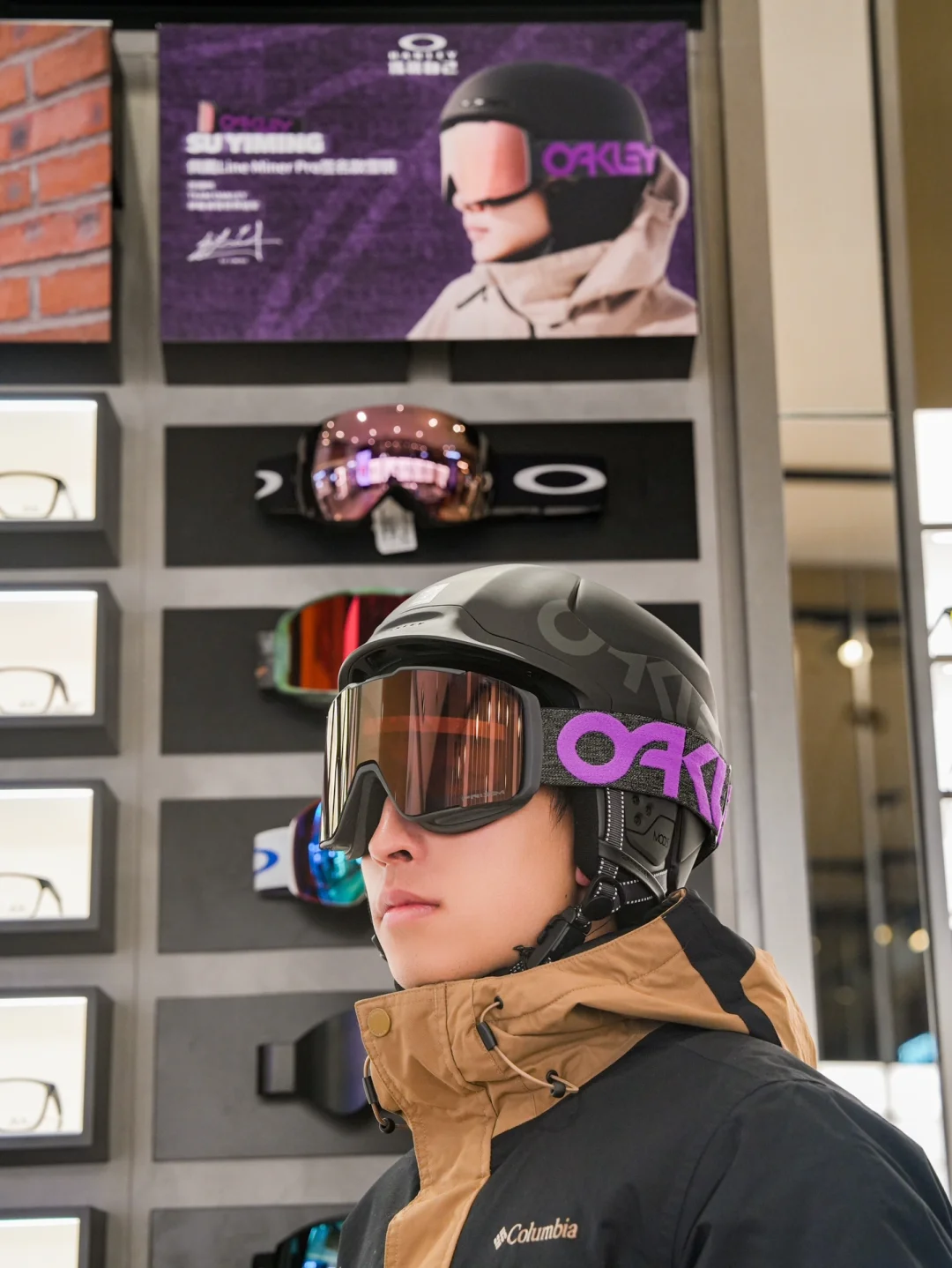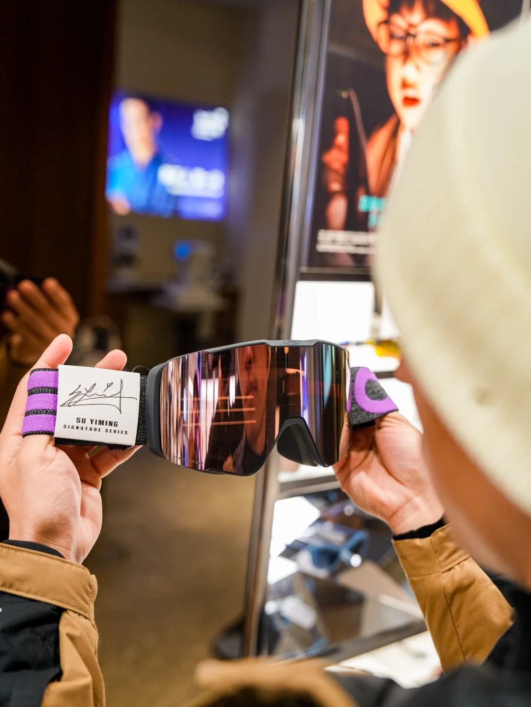 今天前往川西太子岭滑雪场的路上,专门去了趟成都太古里亮视点,一进门就被展示柜中的滑雪眼镜区域深深吸引。在众多选择中,我瞬间被苏翊鸣同款雪镜捕获了心神——是一款备受推崇的LINE MINER 高性能滑雪镜,设计感十足。