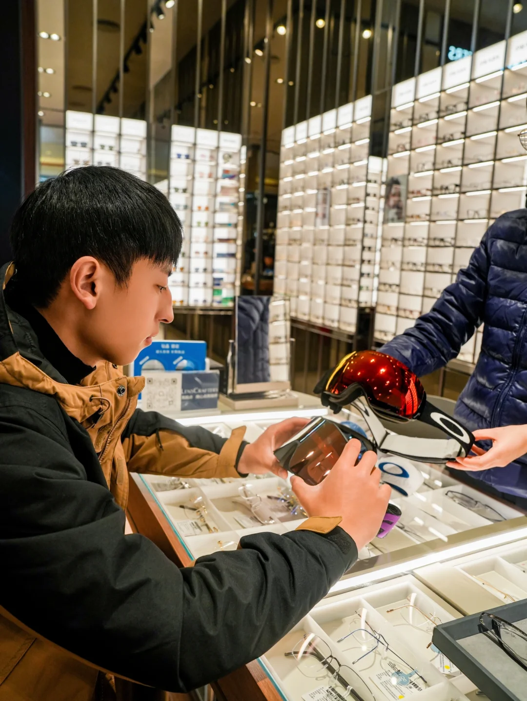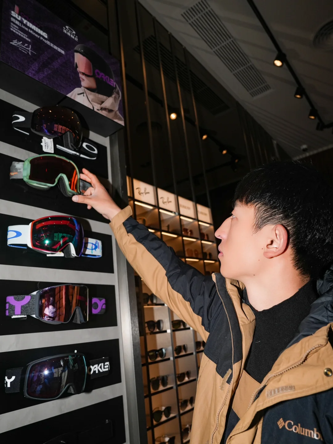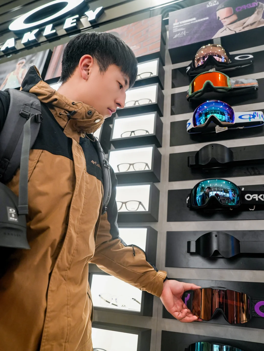 今天前往川西太子岭滑雪场的路上,专门去了趟成都太古里亮视点,一进门就被展示柜中的滑雪眼镜区域深深吸引。在众多选择中,我瞬间被苏翊鸣同款雪镜捕获了心神——是一款备受推崇的LINE MINER 高性能滑雪镜,设计感十足。