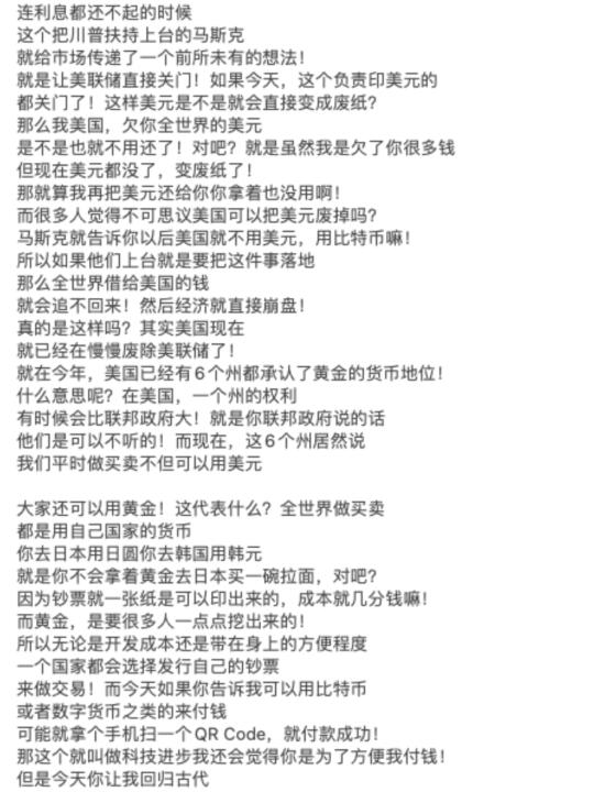 马斯克就告诉你以后美国就不用美元,用比特币嘛!
