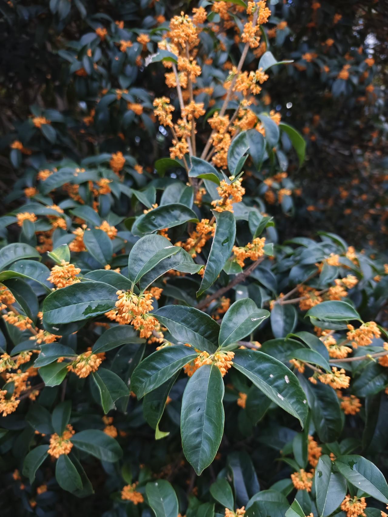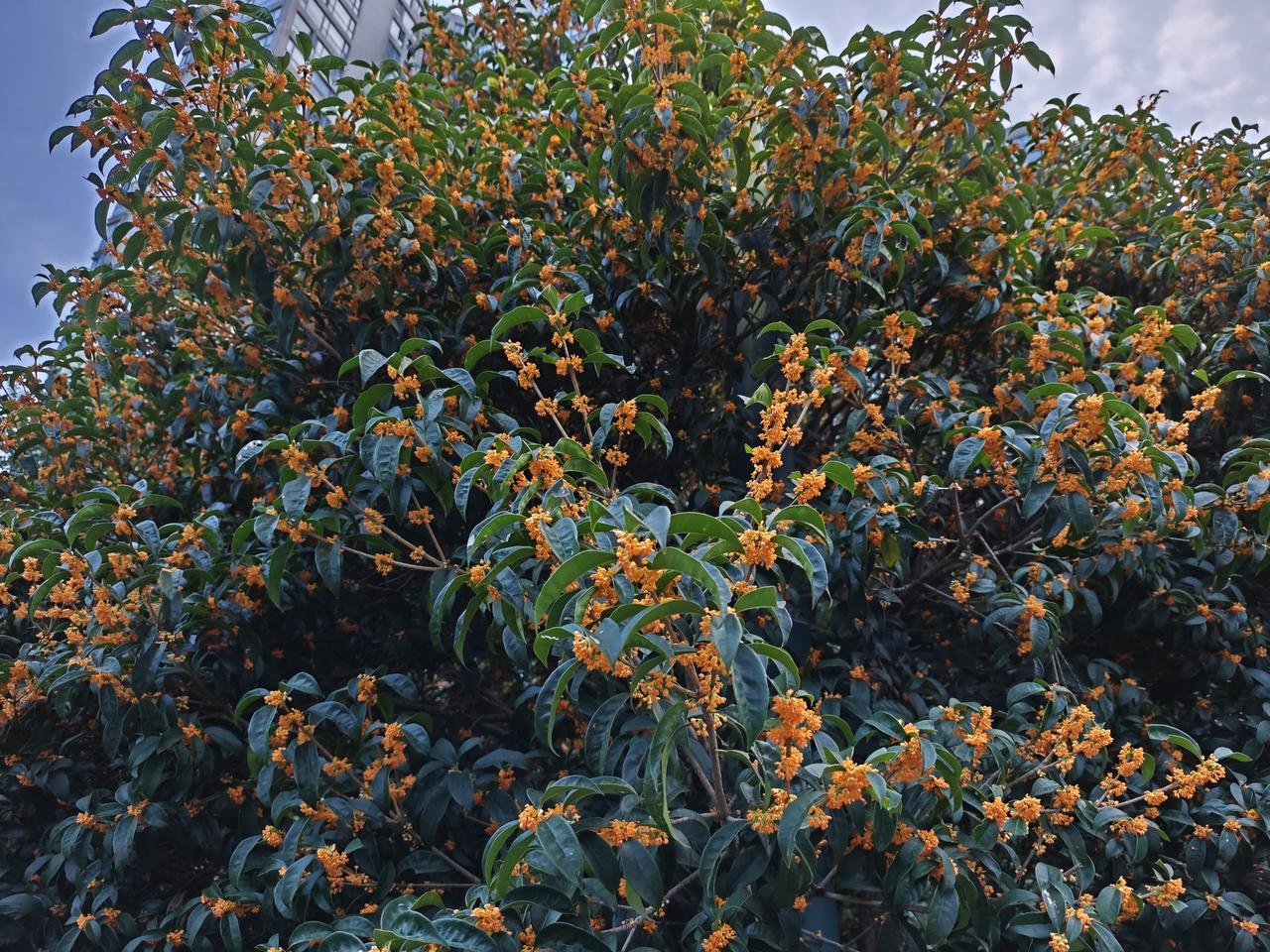 我的今日状态:😁轻松愉快 我这里的天气:☀️晴天 穿过熙熙攘攘摩肩接踵的人群来到杭州看桂花最热闹的地方——满觉陇路,一路闻着桂花香,心情倍爽。 杭州著名的桂花路,满觉陇路是杭州最接地气的地方。杭州人喜欢在双休日来这里逛一逛,喝点龙井茶,欣赏一下美景,看看矗立在茶园中精美的木楼——杭州网红“汤屋”,顺便再买点桂花糕回去尝尝,这日子美滋滋的要多幸福有多幸福。
