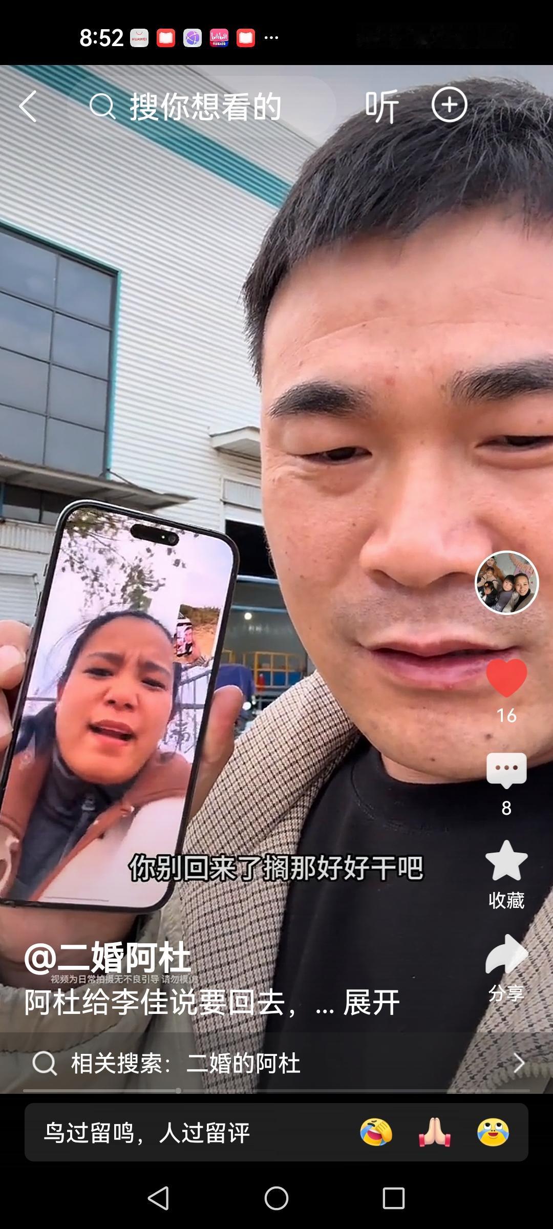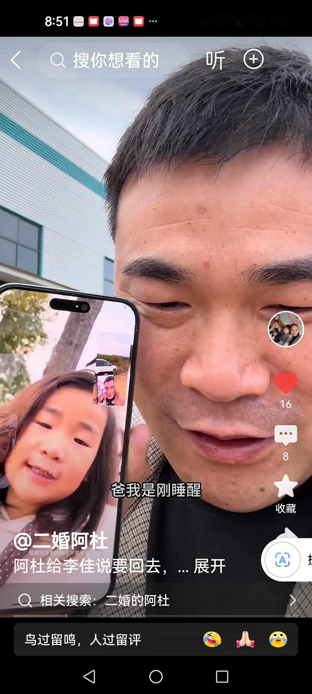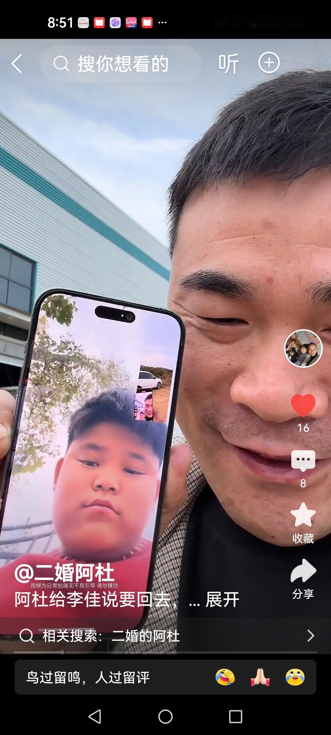 耳环找到了 昨天阿杜又想孩子们,在和过星期天的孩子们,视频聊天,小依依在告她奶奶的状,说她奶奶一天来八百趟,还把她妈妈直播时的网线拔断,正聊的起劲,老壳子又来了,也在向儿子诉苦,天天饿着肚子,李佳也不管饭。 依依和奶奶无休止的争吵,生活中的交响曲,正在激烈的进行着。 在通话的视频中,有老壳子的面容,两个耳朵上都带有耳环,证明耳环没丢。 自己导演了一天的丢耳环大戏,找品牌方帅哥和李佳俩人的麻烦,非让俩人赔钱5800,亏了没上当受骗。 也不知是自己故意藏起来了,还是丢了又找到的?