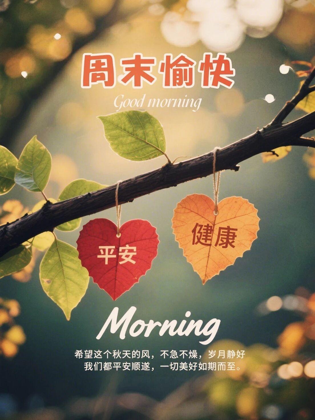 周末祝福问候早安图文: 🍁²⁰²⁵/₁₁.₀₂ ᵕ̈🌸深秋周末临,愿寒风绕路,暖阳常伴。生活熙熙攘攘,一半诗意,一半随意,愿你今日放下忙碌,享受片刻宁静,周末愉快呀🌾 🍁²⁰²⁵/₁₁.₀₂ ᵕ̈ 携一缕秋风,开启今日好运。生活的美好,更在于日常的欢喜,周末早安呀~愿你心有晴空万里长,以饱满热情的迎接每一天,生活精彩纷呈,新的一天,向着美好出发! 🌻²⁰²⁵/₁₁.₀₂ ᵕ̈🍀清霜漫过清晨,带着桂香的余韵,裹着暖阳的温度,捎去我的惦念。愿我们随秋意沉淀,伴岁月安暖,无忧常乐,岁岁平安。早安🍁 🌻²⁰²⁵/₁₁.₀₂ ᵕ̈ 🍁霜风渐起,时光酿香,心若简单,快乐自会生根。新的一天,与你道声早!做个从容的人,不慌不忙,不失方向,认真生活,收藏每一份小确幸。周日愉快~ 🌻²⁰²⁵/₁₁.₀₂ ᵕ̈ 🌈天气好,心情好,身体好,感觉一切都很美好,周末啦~希望努力拼搏的你可以忙里偷闲一下,让自己放空,充充电,再努力拼搏! 分享清晨温馨的话语 早安