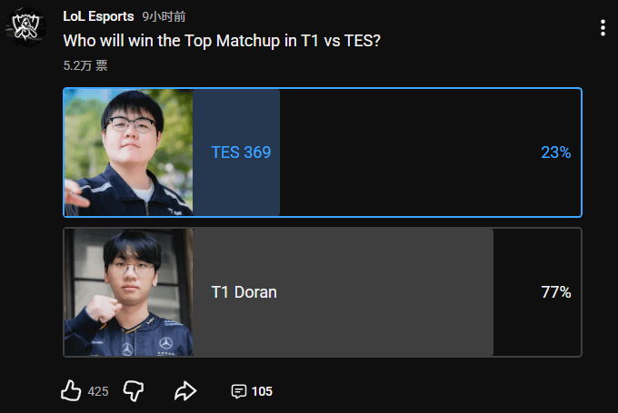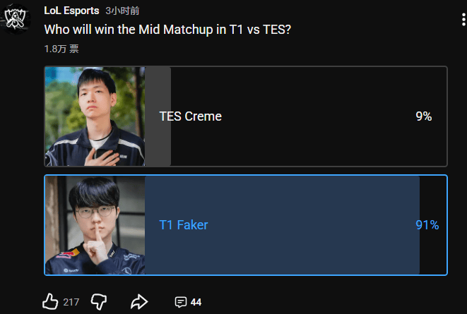 虎扑11月02日讯LoL官方发布S15淘汰赛,T1对阵TES对位选手投票。
