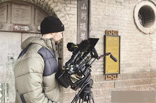 纪录片《徒步黄河》摄制组工作人员在碛口古镇取景拍摄