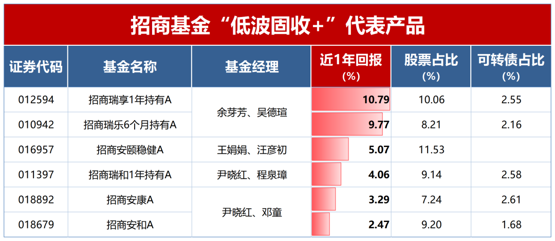 代表产品:招商瑞泰1年持有、招商瑞泽1年持有、招商信用增强等