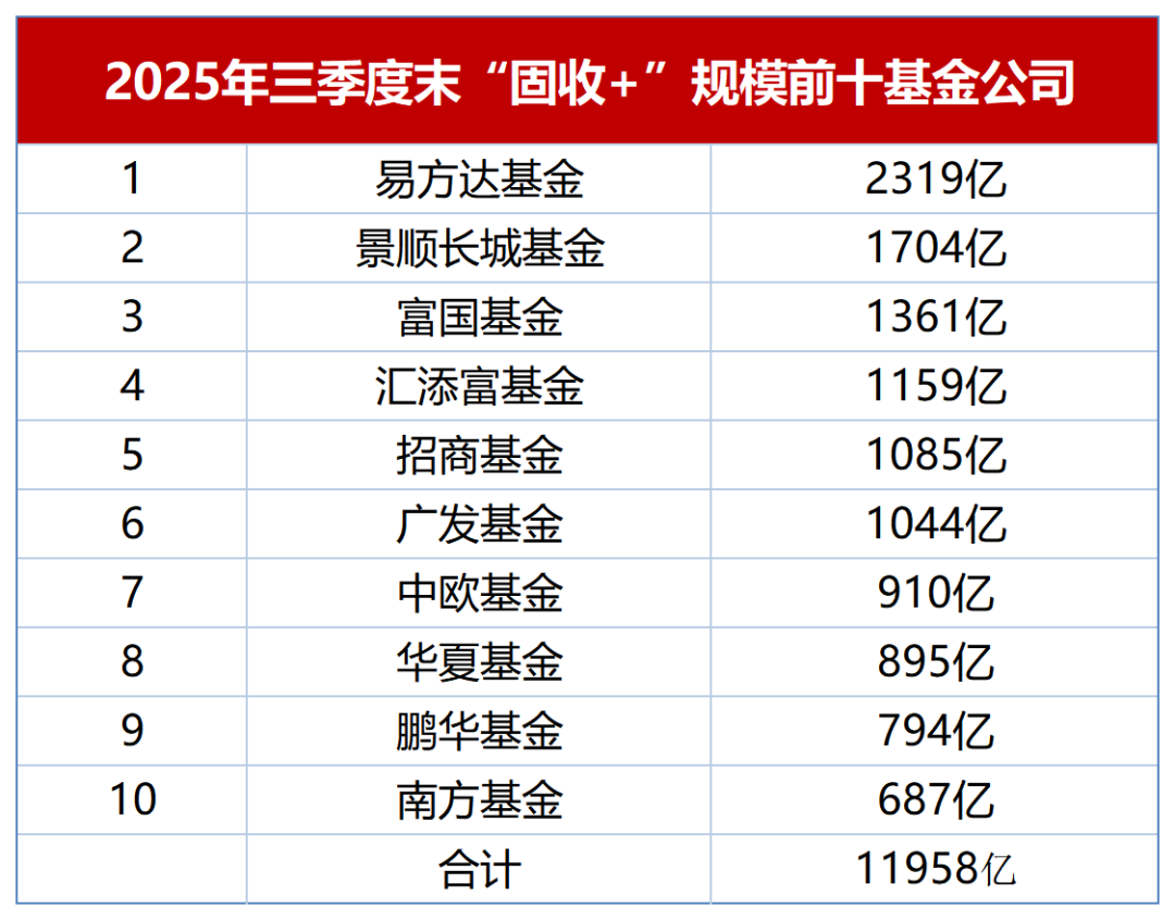 下表是今年以来“固收+”规模排名前十的基金公司,可以看到,其规模合计几乎占到全市场的一半(占比接近48%)。