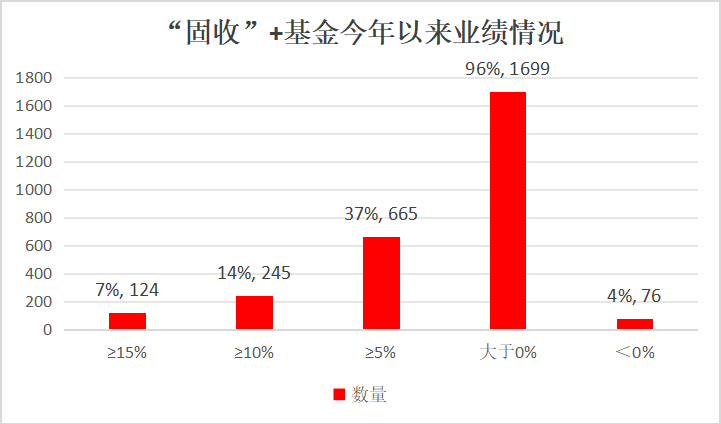 从整个收益来看,“固收+”市场在经过前两年的深度调整后,近一年来业绩开始回归。年内全市场的1775只“固收+”基金中,超过95%的基金都实现了正收益,收益超15%的基金有124只,占比接近7%。