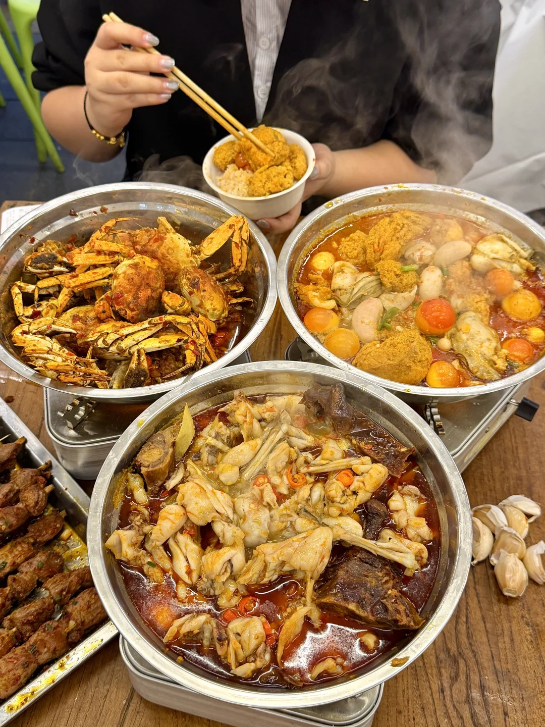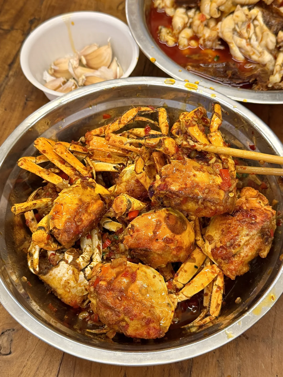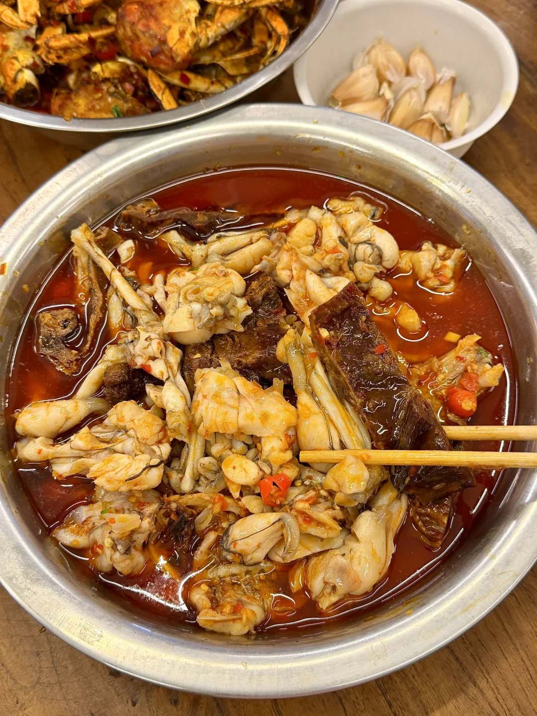 长沙最牛逼好吃的酱板鸭牛蛙!已经三刷了😭😭巨入味,蛙蛙个头也很大,越煮越好吃!还有鱼籽鱼泡火锅、香辣蟹……只要不倒闭我会一直吃下去的!!(叫:盆盆大排档)