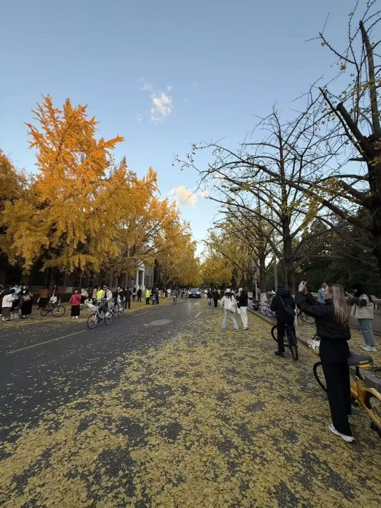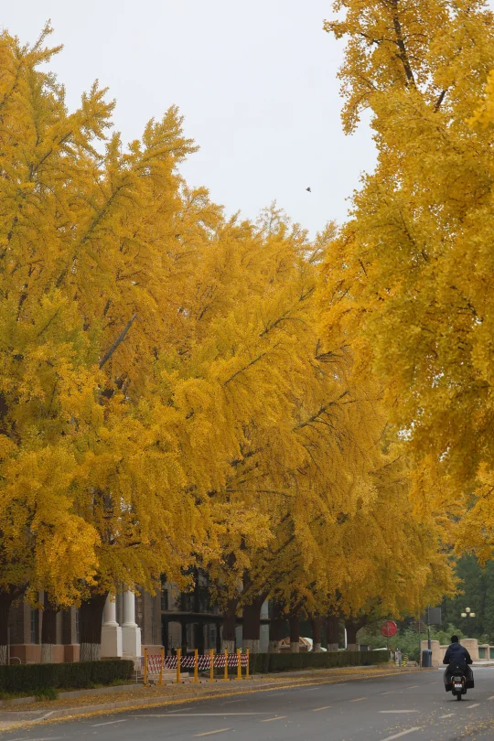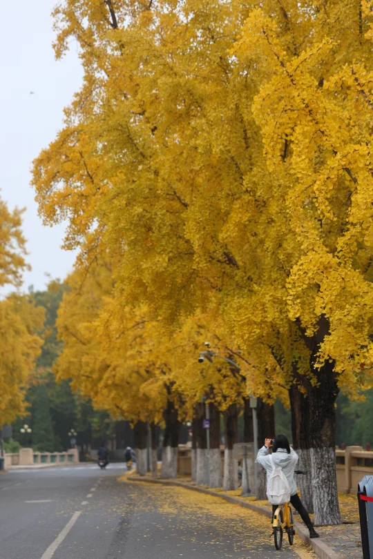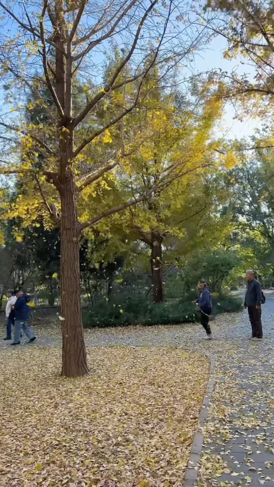 是昨天拍的,ta亲眼看到一颗银杏直接吹秃了