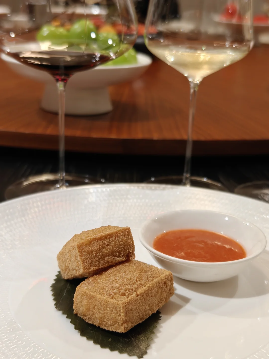 • 抛豆腐蘸柿酱:豆腐软嫩,柿酱酸辣润泽,素食亦显精致。
