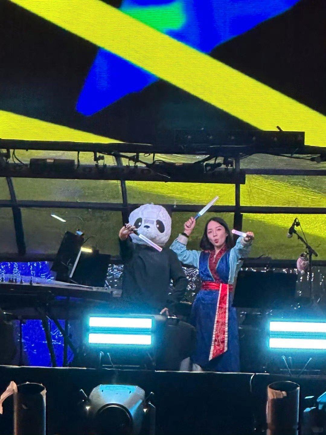 跟周深上班久了会被同化 在周深的演唱会上,惊喜永远比歌单多。三星堆弹吉他、熊猫蹦迪直拍、古筝老师戴熊猫头、花木兰吹笛子——这哪是演唱会,这是沉浸式国风奇幻秀!