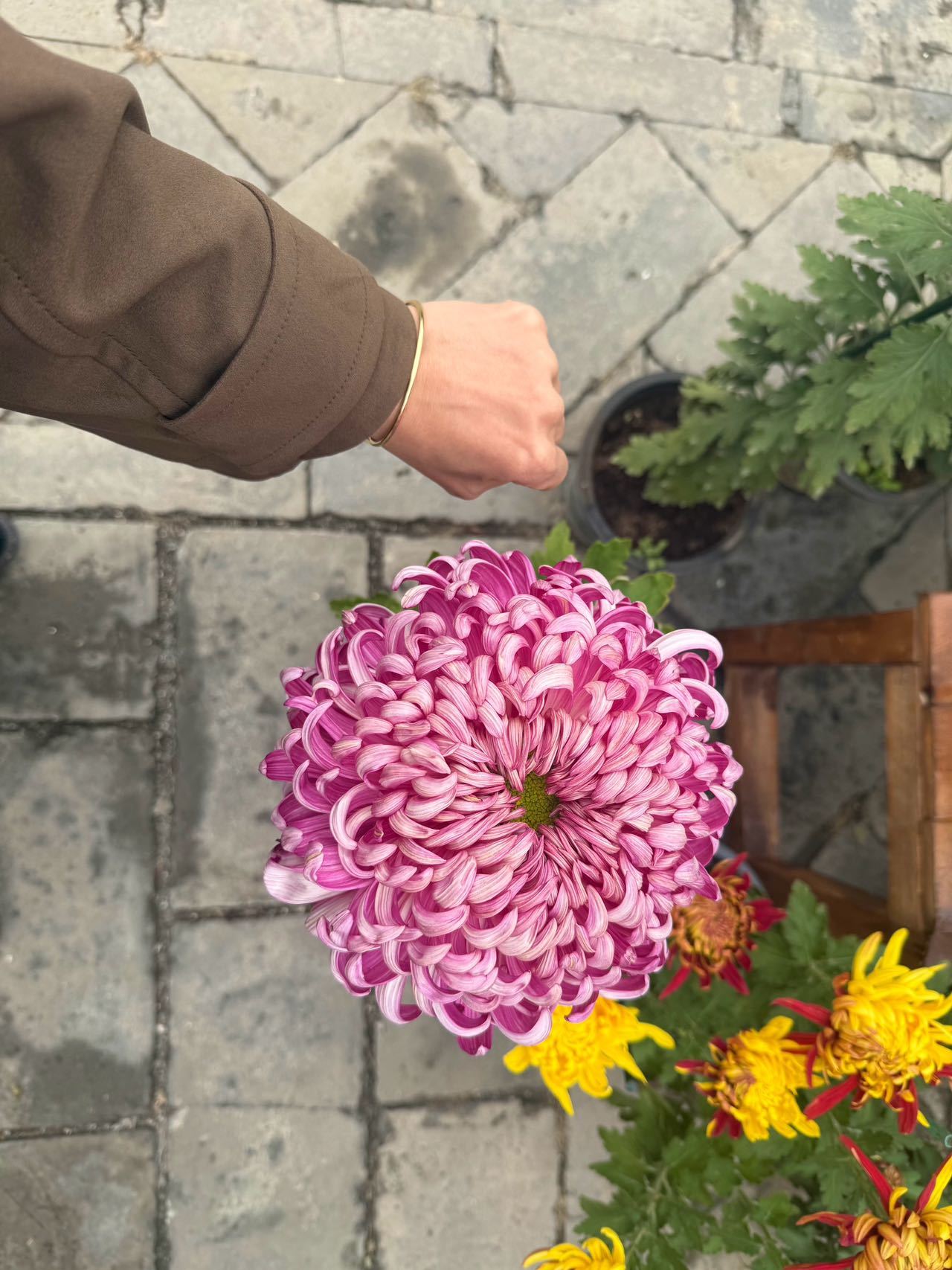 王珞丹分享巨型菊花 王珞丹在微博上分享北京巨型菊花,晒出的菊花比她的脸还大,跟着