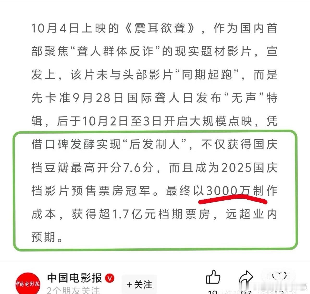 《震耳欲聋》🎬票房已破2.5亿,以小博大,这成绩远超业内预期啊[傻眼]檀健次是摇钱树