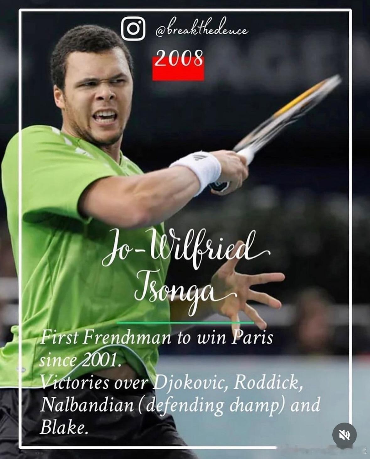2008的宋佳🇫🇷:自2001年以来首个本土冠军,击败了德约科维奇,罗迪克,纳尔班迪安(卫冕冠军),布雷克;