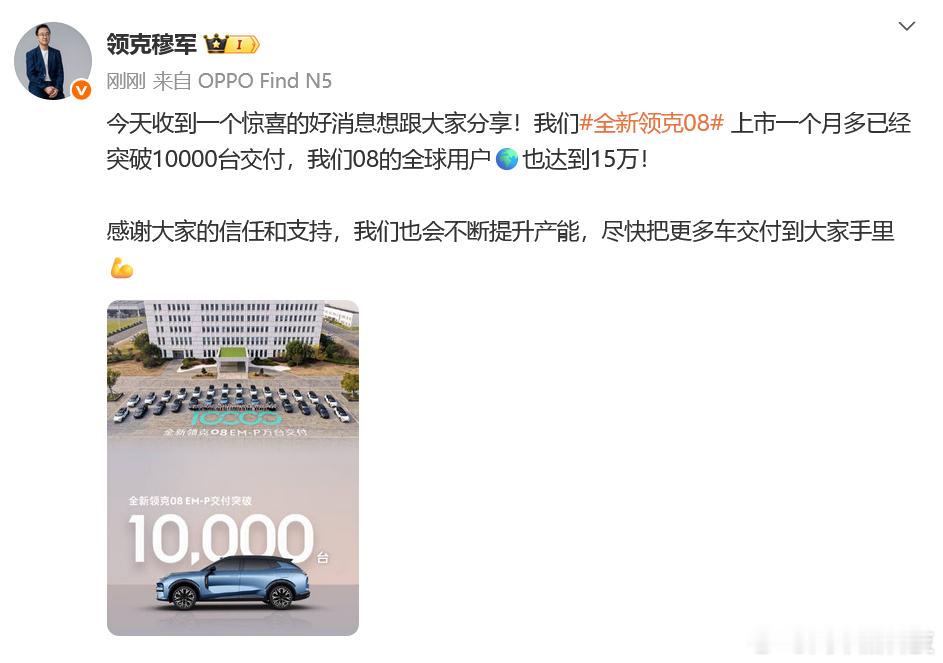 全新领克08上市一个月交付破10000台 回顾下 新车划重点 9月24日,新款领克08 EM-P正式上市,在10月31日前购车,可享限时售价 15.98 - 21.28万元。新车最大的升级是搭载千里浩瀚辅助驾驶H7方案,支持城区和高快NOA。