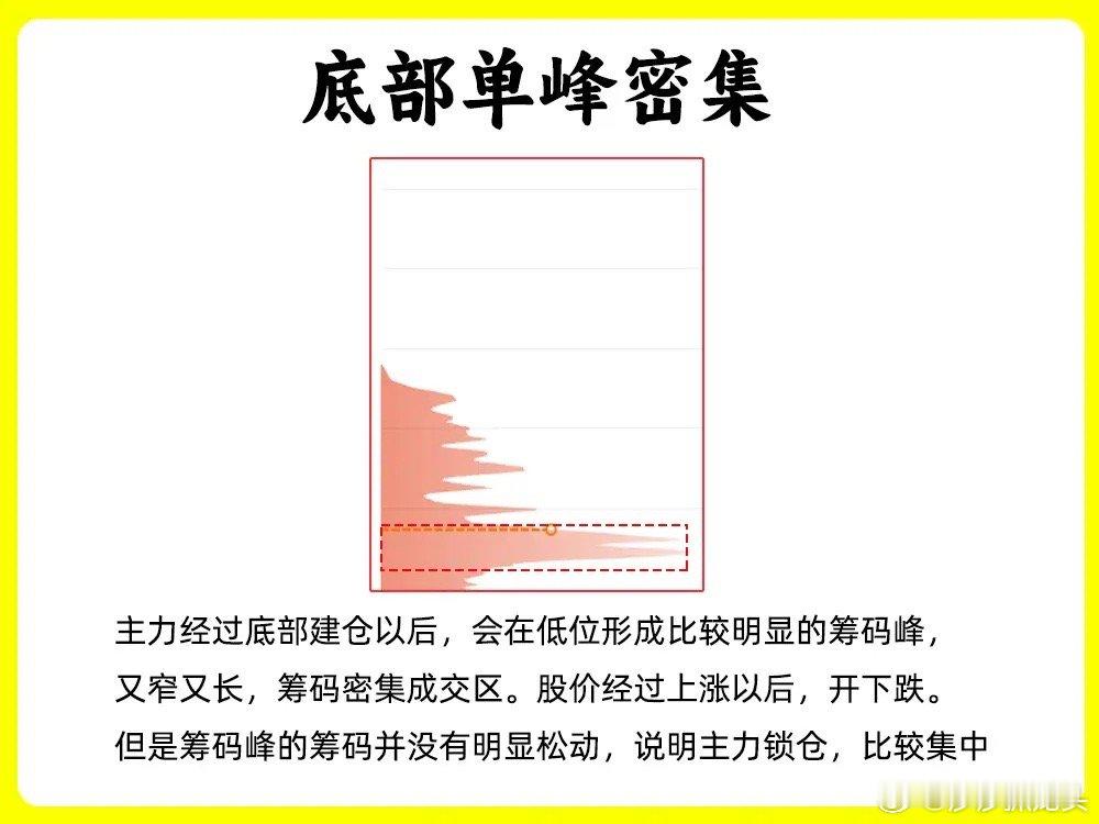 主力出货阶段,股价经过长时间的上涨以后,筹码分布图里,底部筹码开始松动,开始逐步上移。会从单峰密集变成分散,多峰密集或者顶部筹码密集。