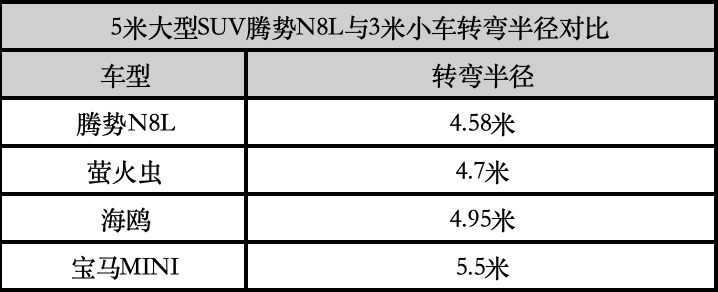 一直以来,中大型SUV由于车身长、轴距长,在双向四车道甚至更窄的路上一次性掉头几乎不可能,经常需要倒车一把甚至多把,在车流中非常尴尬和危险。而除了转弯半径大,“掉头难”,视野盲区多、停车困难,也是痛点之一。而和很多同级别的SUV对比,N8L的转弯半径要小1米甚至是接近2米。