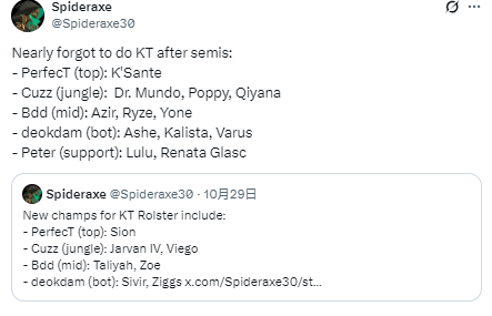 虎扑11月02日讯昨日KT晋级决赛,KT在2025全球总决赛里所使用过的英雄: