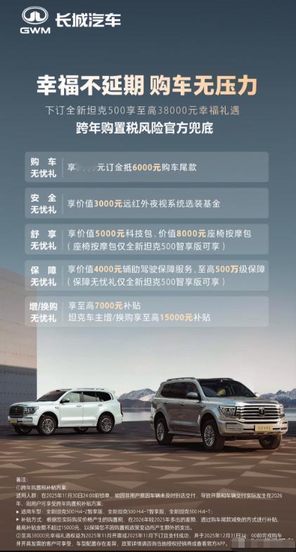 作为半个越野车迷,我一直都很关注坦克的表现! 10月份坦克品牌销量22306辆,其中全新坦克500系列销量达到了7609辆,同比大灯77.6%,环比增长37%。 要知道,这可是一款33.5万元起售的硬派越野车,有这样的成绩实属不易。 而且,这款车的订单中,搭载了高阶智驾功能的智享版车型占比高达98.4%,这说明它早已突破传统越野车的边界,实现了真正的可城可野。 实际上,全新坦克500近期已经得到了张雨绮的首席推荐,宅男女神王钟瑶也已经提车,越来越“出圈”了。 不仅如此,全新坦克500在海外市场也能“收割”。11月1日,这款车在马来西亚上市,价格高达57.2万元。 强悍的整体性能,加上“越野+智能+豪华”理念带来的多元化用车场景,以及海外市场的开拓,全新坦克500接下来冲进月销万辆俱乐部并不难。 趁着这股东风,全新坦克500还想再冲一下,现在下订就可享受最高38000元的福利,很多用户关心的跨年购置税风险也由官方兜底。 我总感觉,坦克这个越野老炮会把全新坦克500推到一个新的高度!【来自懂车帝车友圈】