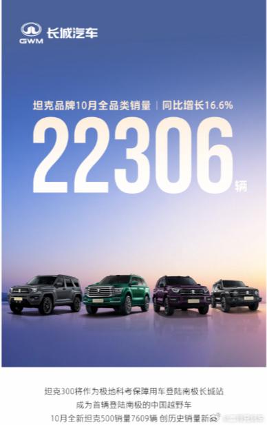 作为半个越野车迷,我一直都很关注坦克的表现! 10月份坦克品牌销量22306辆,