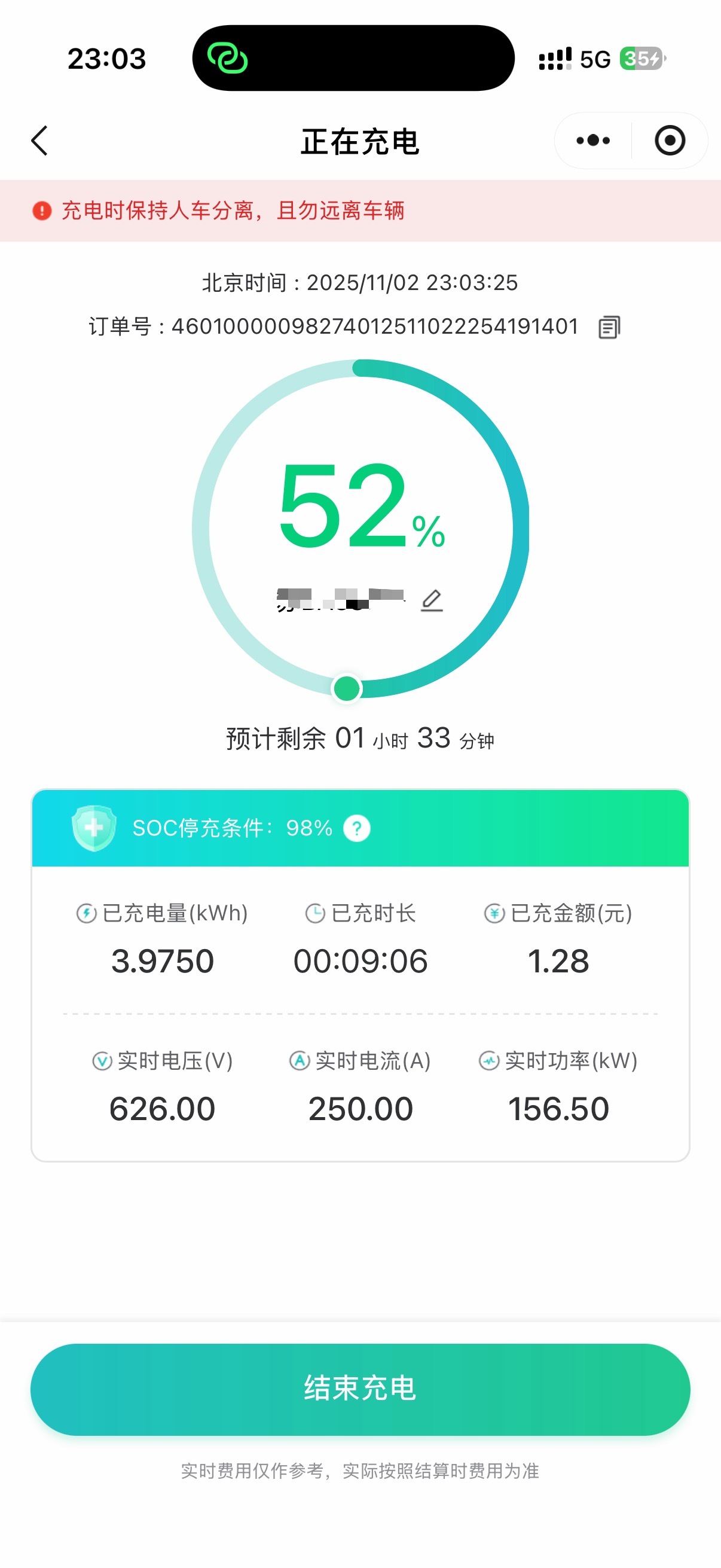 中石化快充夜间电费0.32/度秉承着有便宜不占王八蛋的共同理念成功在充电站抢到了