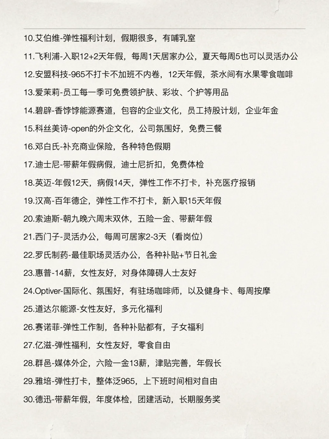 金九银十求职黄金期,魔都外企才是真天花板,作为国际化大都市,上海聚集了全国最顶配的外企资源,来这里才能真正体会什么叫“Career Growth” . 为什么建议看看上海外企 ??严格遵守劳动法,下班后消息已读不回 ??居家办公混合模式,弹性自由拉满 ??六险一金+补充公积金,保障齐全 ??母婴室、月经假、女性领导力培训…真实落实女性友好 ??全球培训资源+内部转岗通道,职场生涯不设天花板 . 坚持日更???,帮大家在找工作路上顺利拿到offer! .