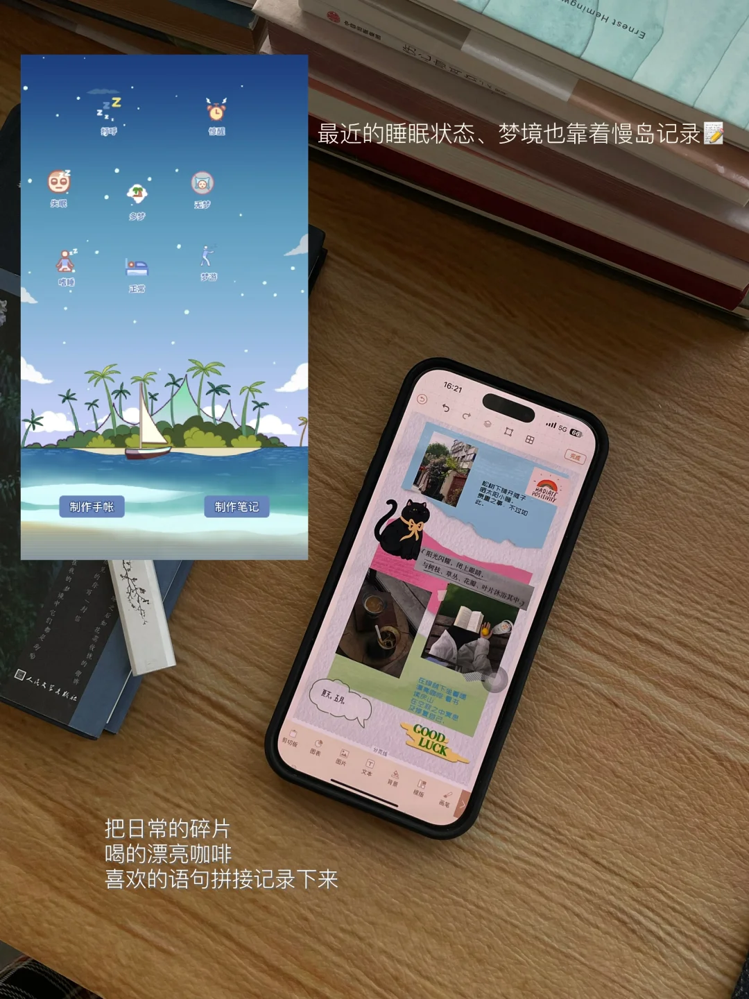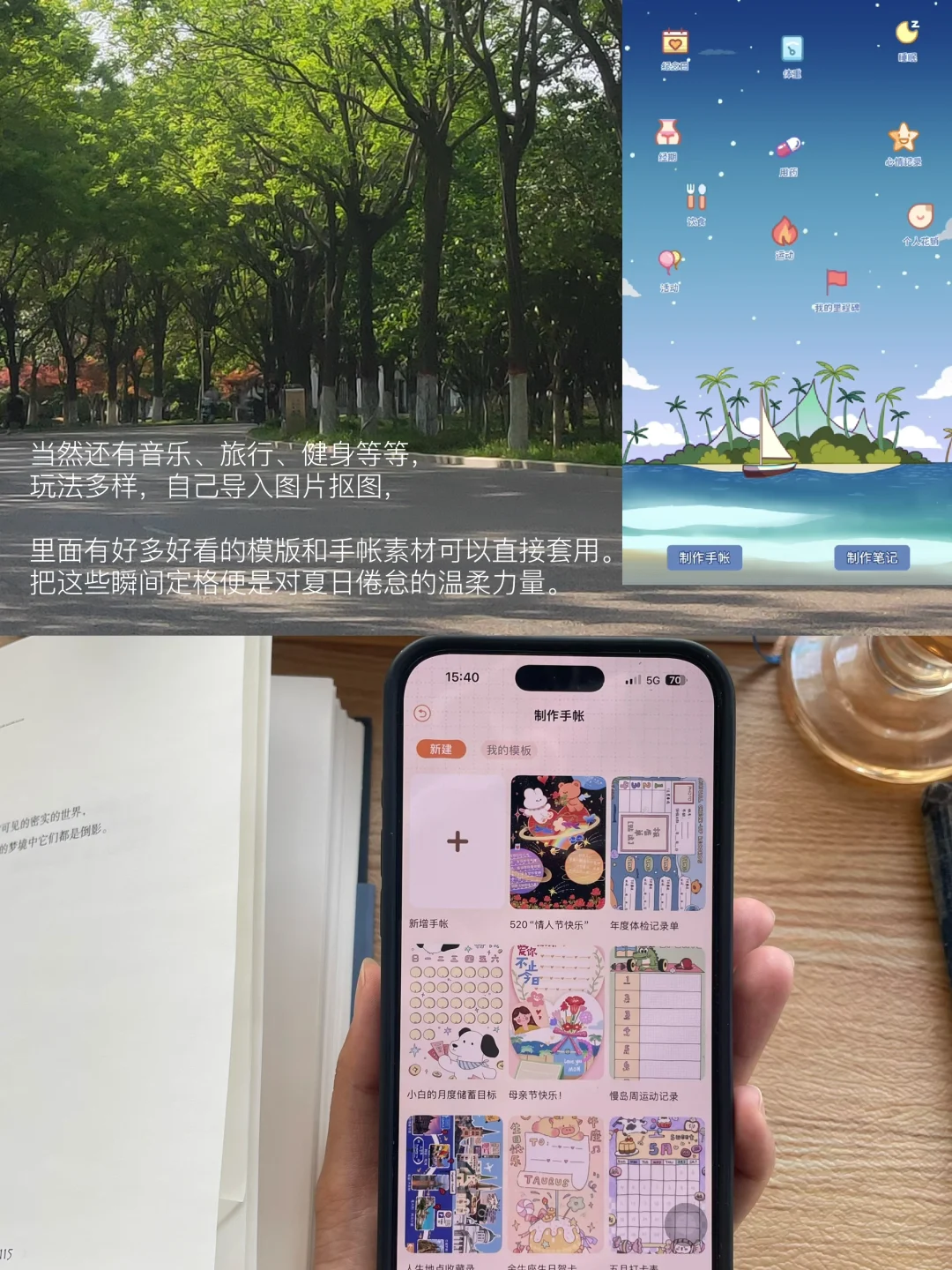 渐渐发现把日常的琐碎记录下来,是很好的整理思绪的方式,最近一直在尝试用慢岛记录日常,看到漂浮的云朵,喝到好喝的手冲,读到共振的文字…当然还有音乐、旅行、健身等等,玩法多样,自己导入图片抠图,里面有好多好看的模版和手帐素材可以直接套用。把这些瞬间定格便是对夏日倦怠的温柔力量。