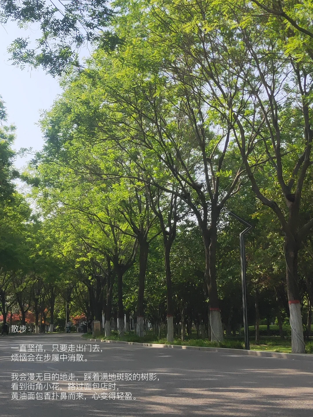 漫无目的地走,踩着满地斑驳的树影,看到街角小花,路过面包店时,黄油面包香扑鼻而来,心变得轻盈。