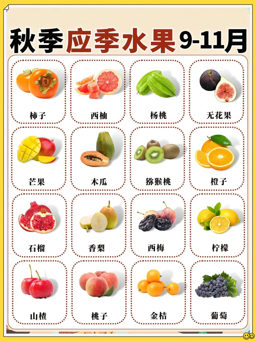 🍇 葡萄、🍊 橙子、柚子、西柚、杨桃、无花果、芒果、木瓜、猕猴桃、石榴、香梨、西梅、柠檬、山楂、桃子、金桔
