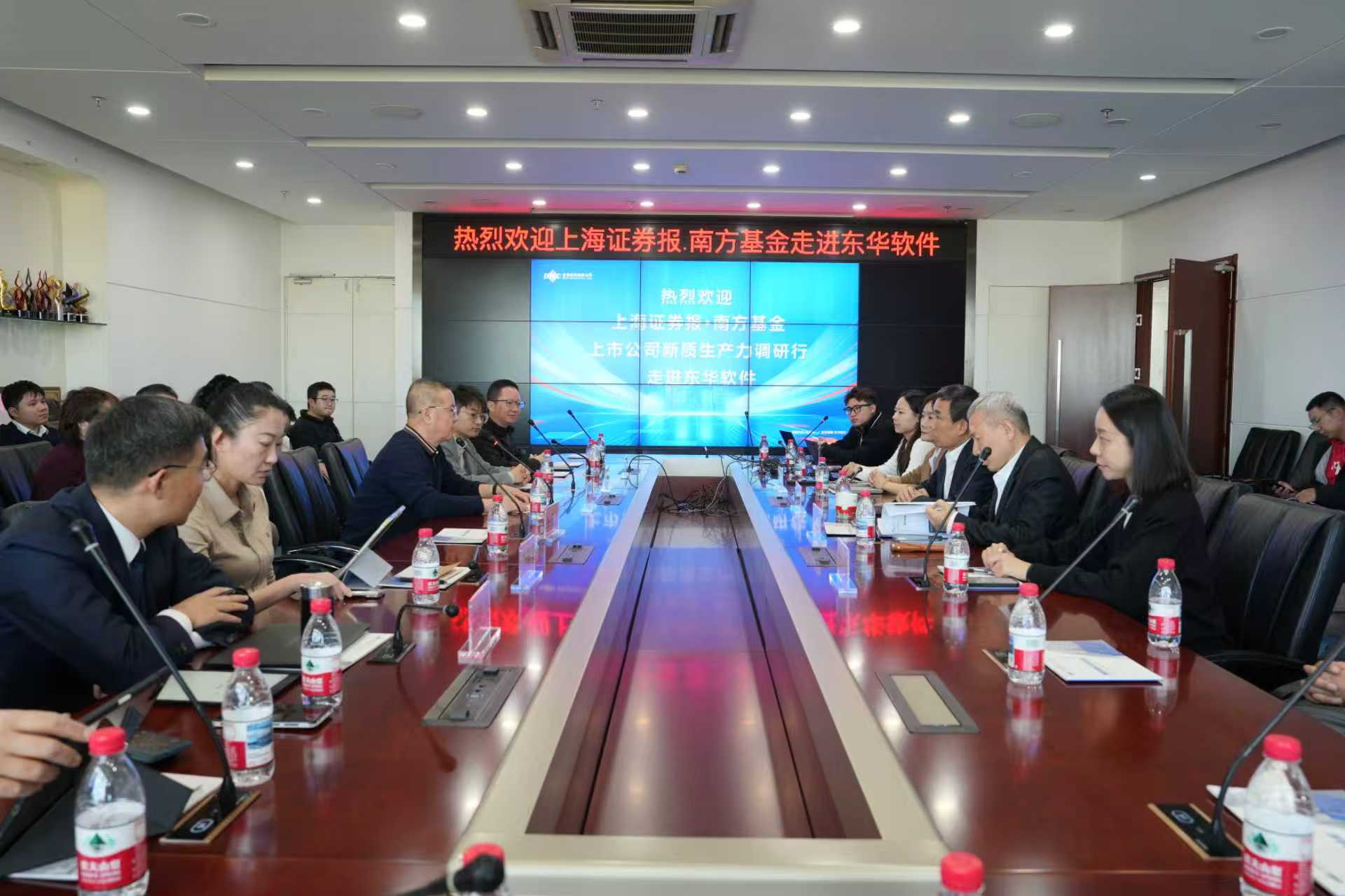 上证报中国证券网讯(记者李雁争)11月1日,由上海证券报与南方基金共同举办的“向新而行以质致远”上市公司新质生产力调研行活动第十站走进东华软件。当天超50位投资者出席活动,通过实地参观、企业介绍、互动交流及主题分享等环节,了解上市公司在新质生产力领域的布局与成果。东华软件董事长薛向东率团队接待了投资者一行,南方基金FOF投资部投资经理李程胤代表机构投资者与公司高管进行座谈交流,并进行了“大类资产配置展望”主题分享,结合其对AI、大数据、云计算领域的深度观察展开分析。