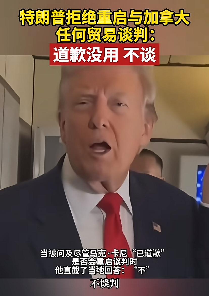 特朗普耍脾气,不与加拿大重启谈判,还说加总理道歉也没用。川普明显是吊加拿大人的胃