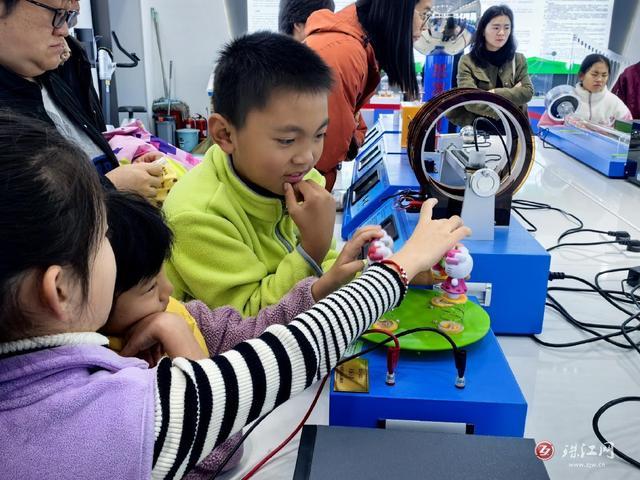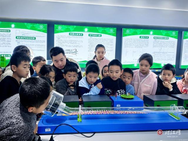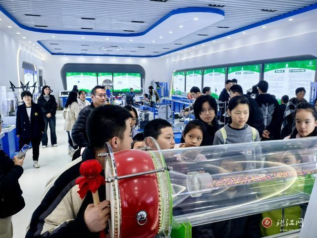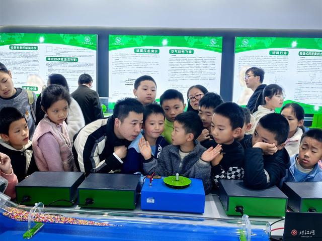 活动现场,小朋友们踊跃参与互动,亲手操作实验装置,近距离观察振动与共振的奇妙反应。不少孩子围着陈老师提问,“为什么不同力度敲鼓,小球跳得不一样高?”“铜盆里的水越多,波纹变化会不同吗?”陈启博士耐心解答每一个问题,用通俗的语言将复杂的物理原理转化为易懂的知识,让大家在动手实践中感受科学的乐趣。