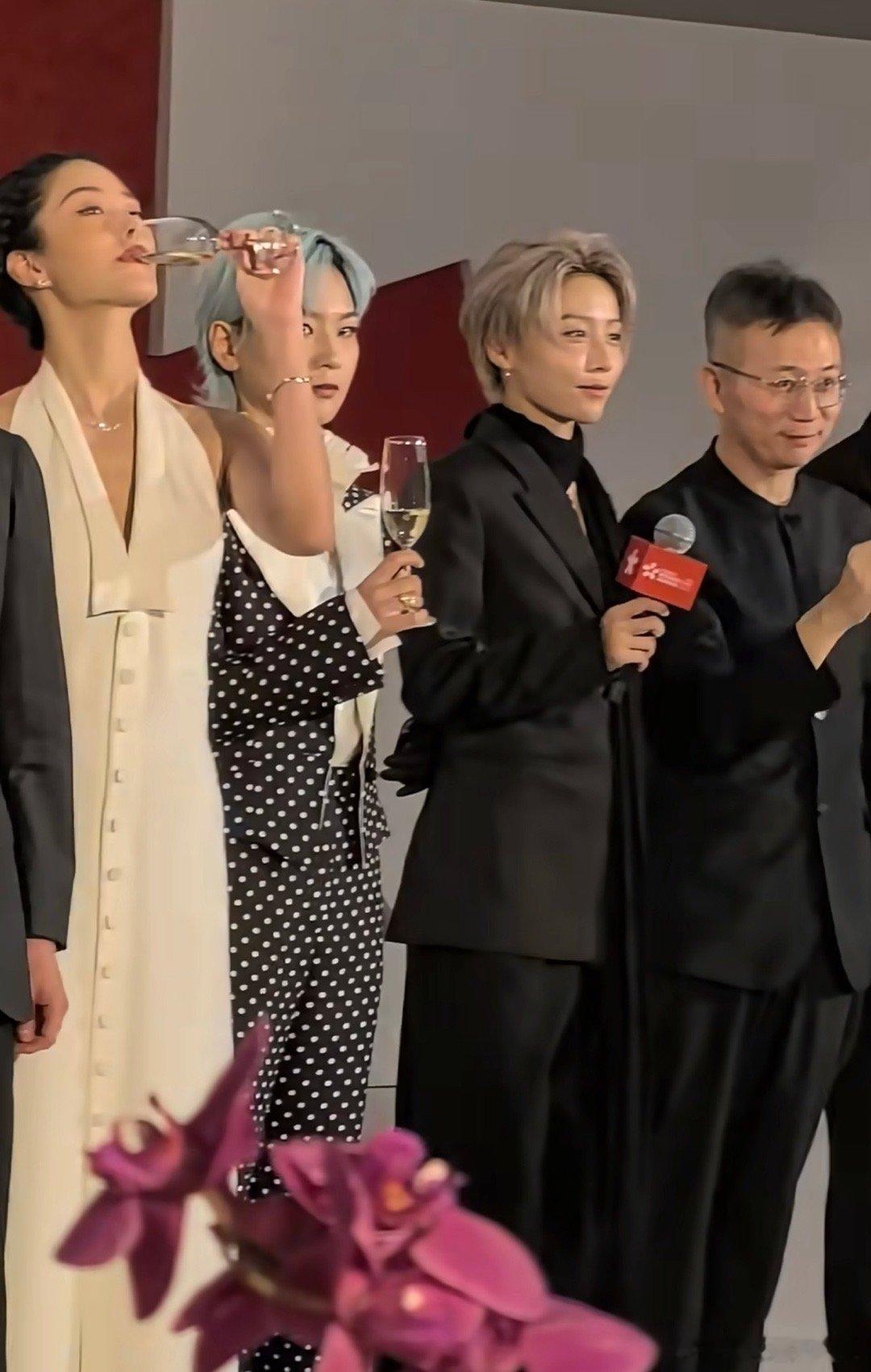 刘雨昕干杯干了个话筒别人碰杯喝酒,她举着话筒碰空气,还一脸严肃地说“干杯”,工作人员差点没忍住笑出声,这波操作太可爱了。