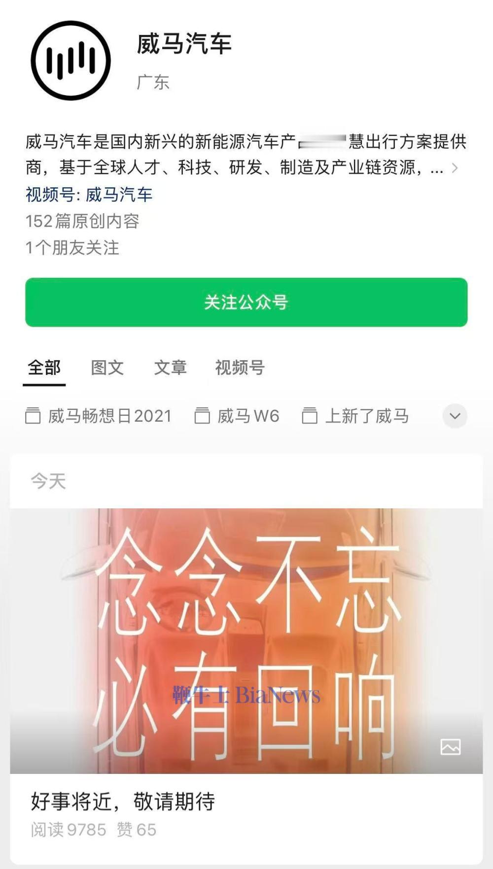 威马汽车今日发文“好事将近,敬请期待”,配图上写有“念念不忘,必有回响”。