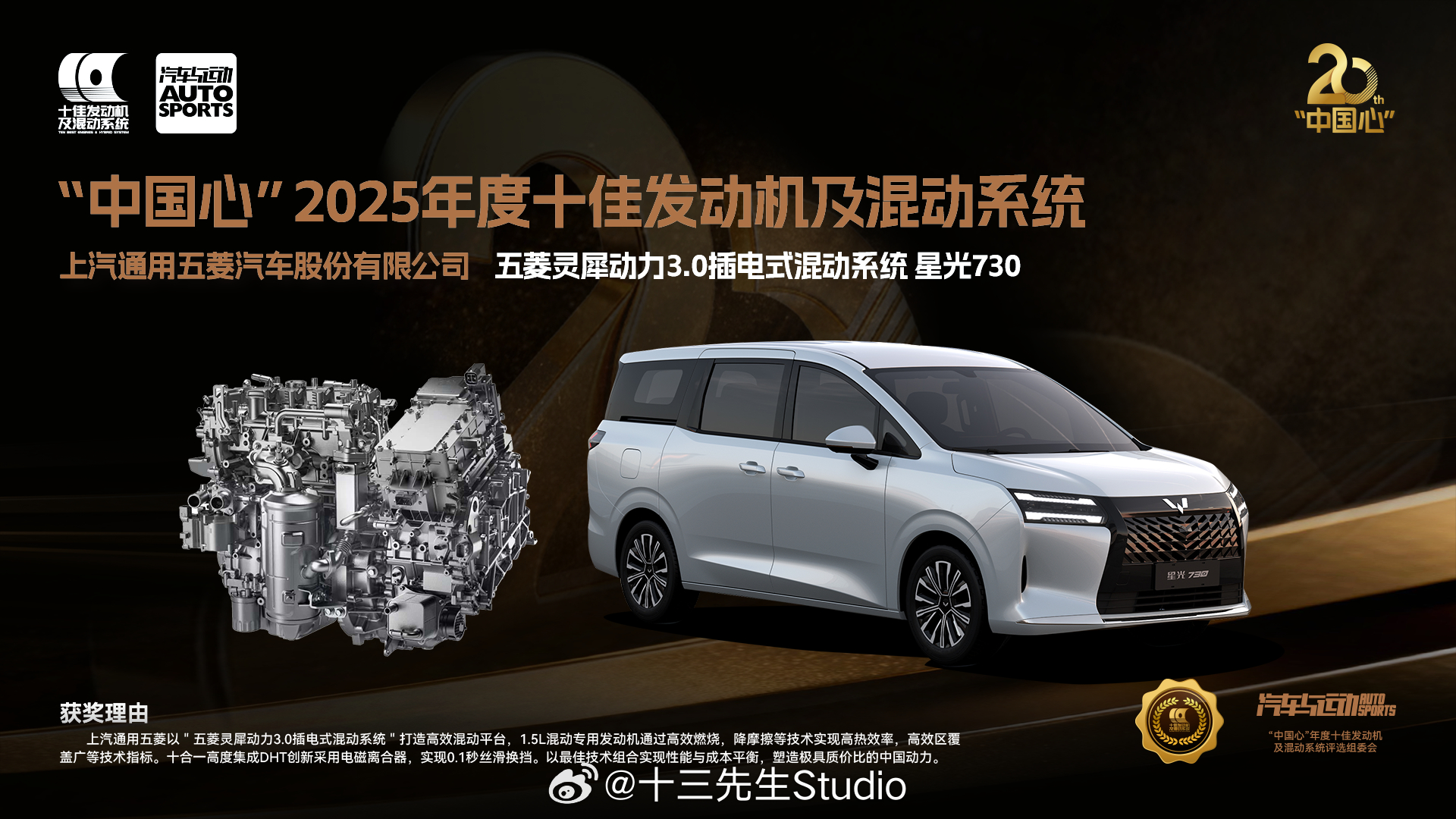 星光730入选中国心十佳动力系统星光730插混版的灵犀动力3.0技术获得了“20